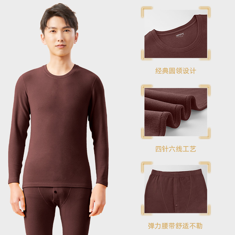 淘贝莱娅9131秋冬羊绒蛋白暖肤衣通勤修身圆领男士保暖套装秋衣秋裤