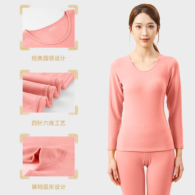 冠得女士保暖内衣润奶蚕丝无痕修身内穿女秋衣秋裤套装纯色打底