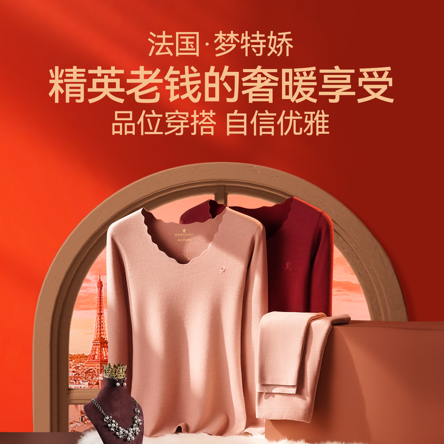 天猫梦特娇德绒无痕保暖内衣女套装加厚加绒发热羊绒蚕丝秋衣秋裤冬季