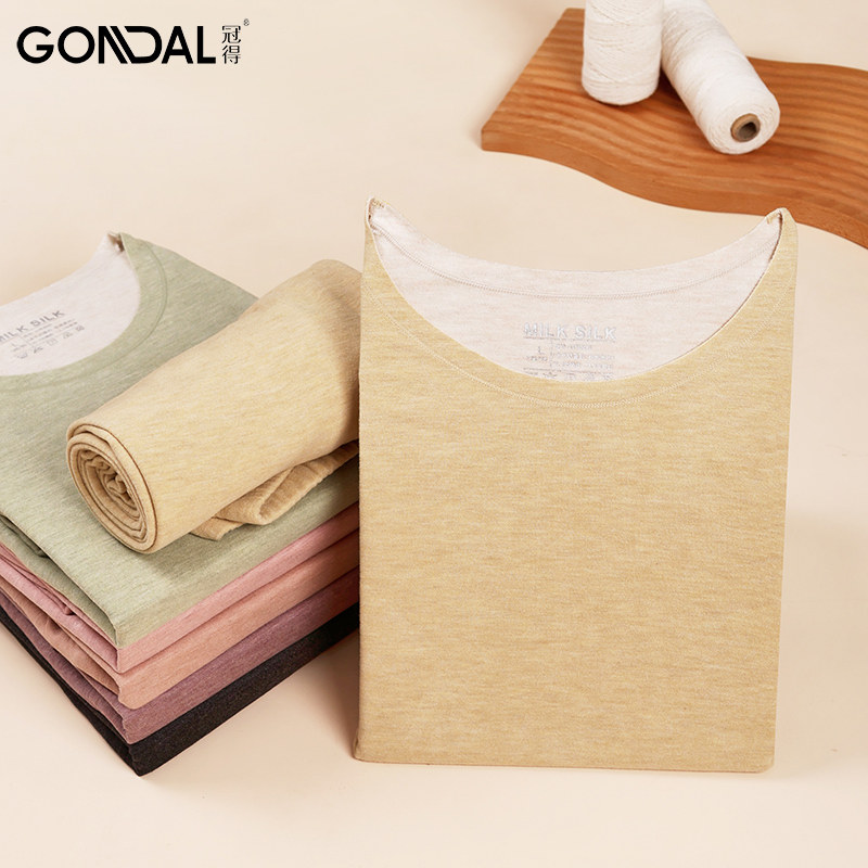 天猫冠得女士保暖内衣润奶蚕丝无痕修身内穿女秋衣秋裤套装纯色打底