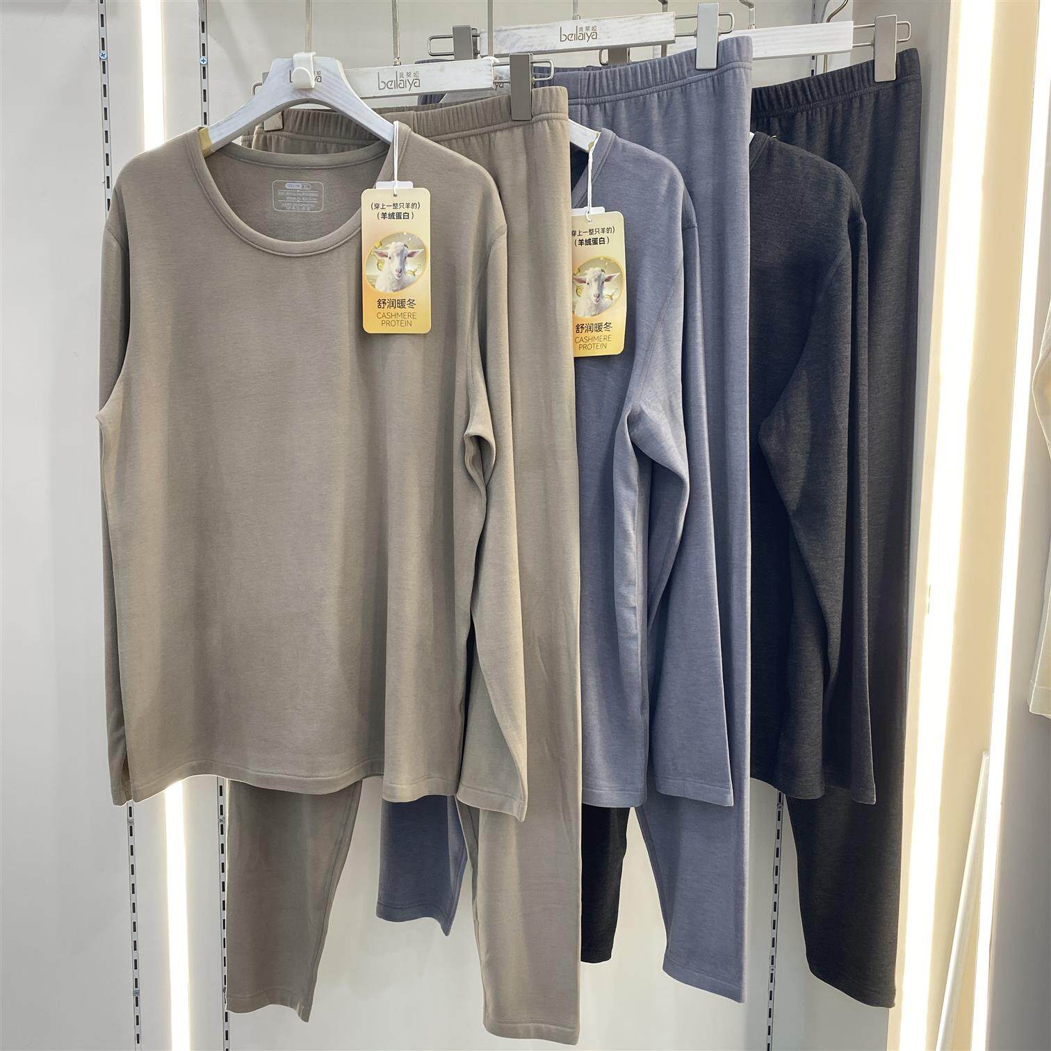 淘宝贝莱娅9131秋冬羊绒蛋白暖肤衣通勤修身圆领男士保暖套装秋衣秋裤