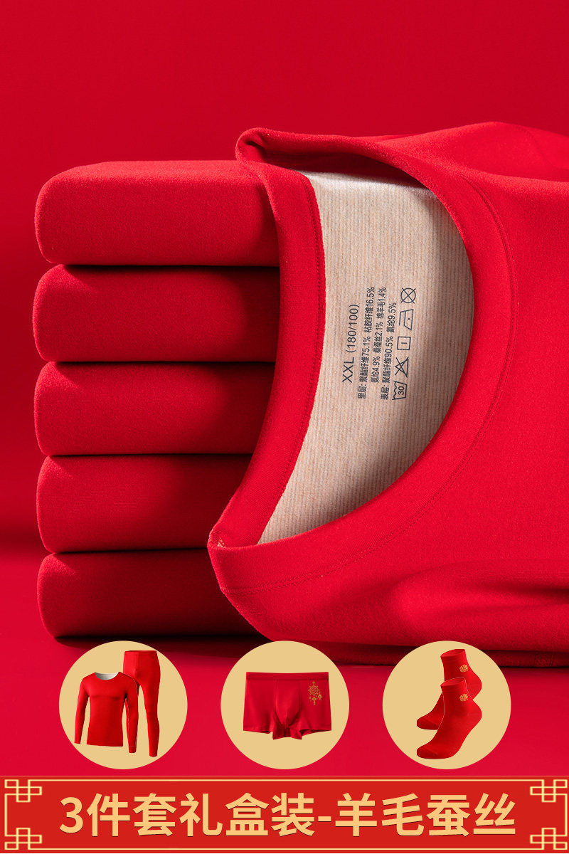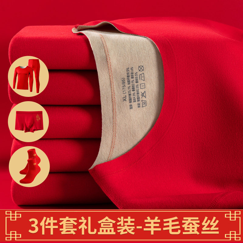 天七色纺马年本命年衣服红色保暖内衣套装女士秋衣秋裤男款新年礼物