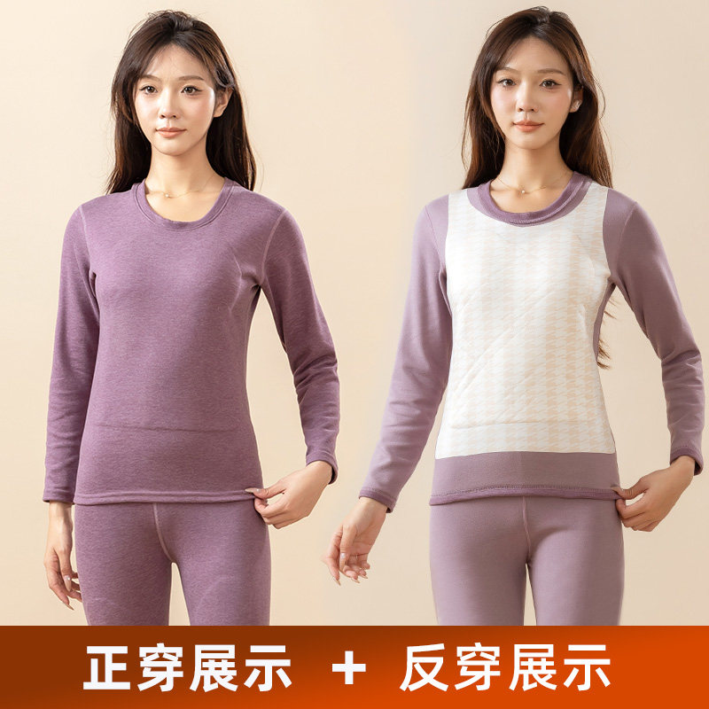 淘宝羊毛女士保暖长袖内衣磨毛德绒秋衣秋裤新款加绒加厚内穿秋冬上衣