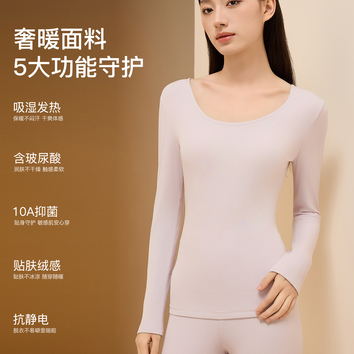 冠得女士保暖内衣润奶蚕丝无痕修身内穿女秋衣秋裤套装纯色打底
