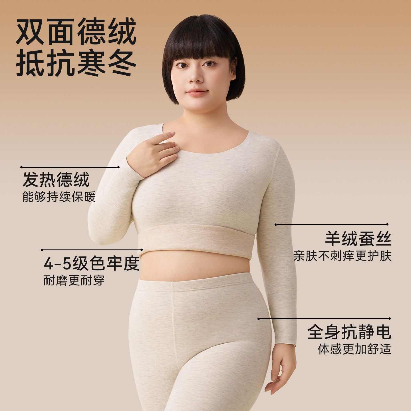 天猫猫人大码秋衣秋裤套装女士德绒发热冬季贴身胖MM羊绒加厚保暖内衣
