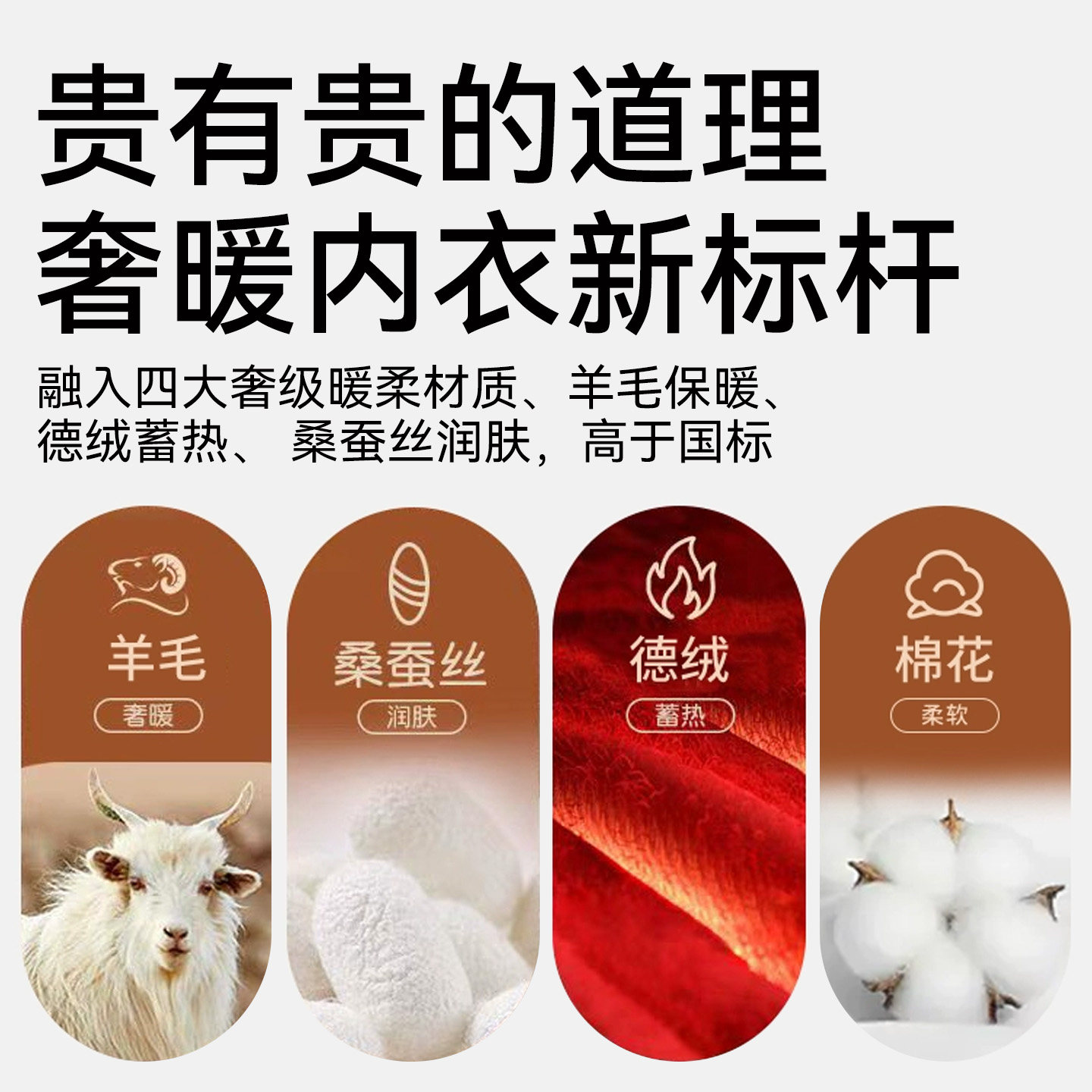 天芬腾羊毛蚕丝保暖内衣男士加厚加绒发热秋衣秋裤套装打底防寒冬季