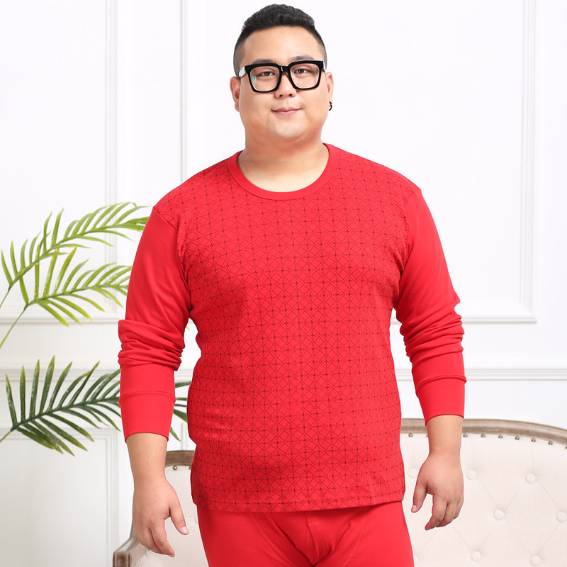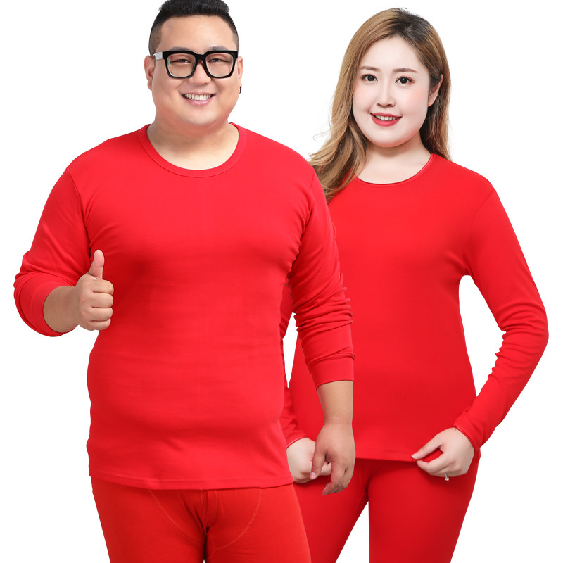 天猫猫人特大码大红纯棉秋衣秋裤套装本命年龙年结婚喜庆情侣打底内衣
