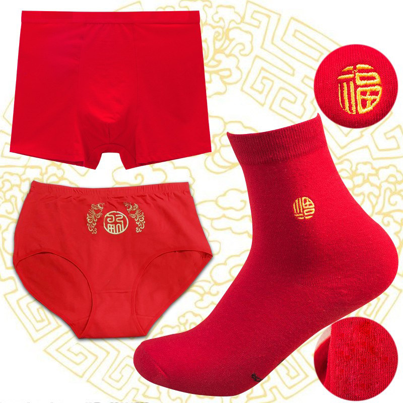 天红豆本命年红色内衣内裤袜子结婚女秋衣秋裤男士马年保暖套装礼盒