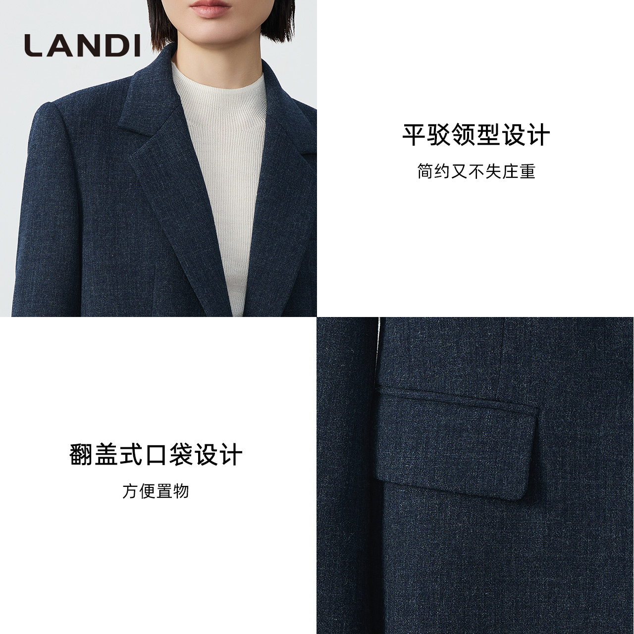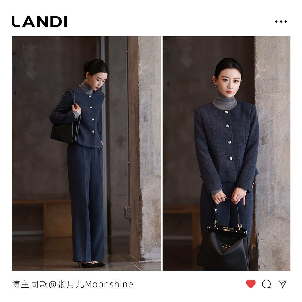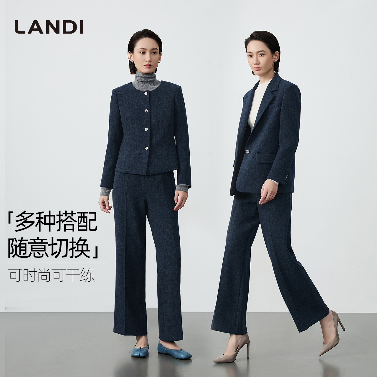 天猫[通勤三件套]LANDI仿牛仔蓝复古气质西装套装女上衣2025冬新品