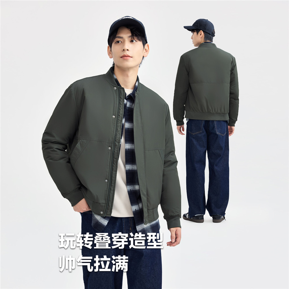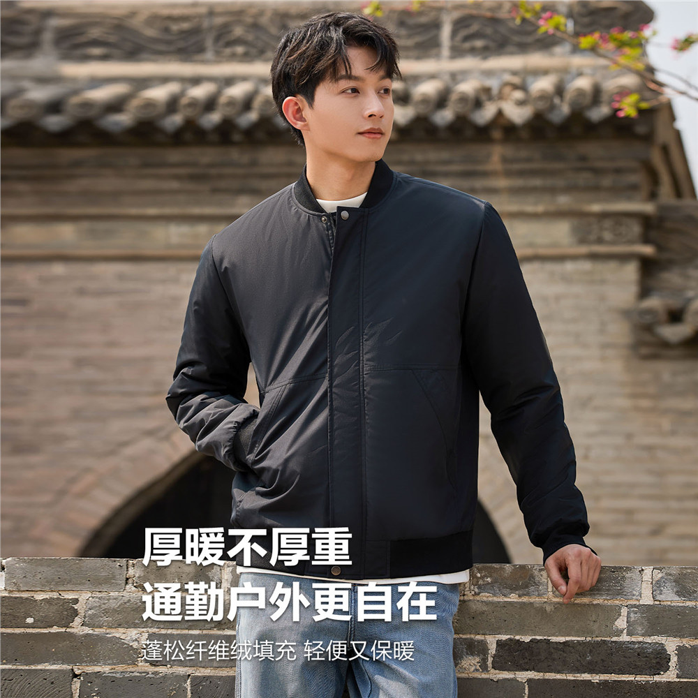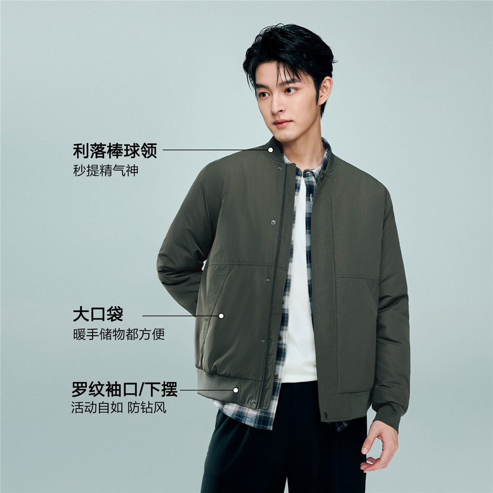 天猫佐丹奴棒球服男秋冬新款棉衣外套斜口袋棒球领飞行员夹克13075860