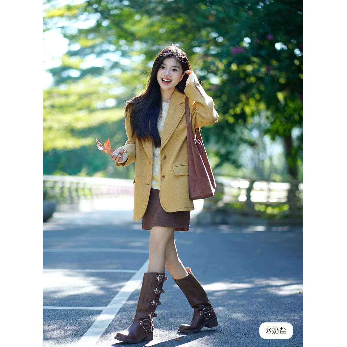 2025秋装新款高端重磅6A级真丝/阿拉善骆驼绒羊毛西装/半裙套装女
