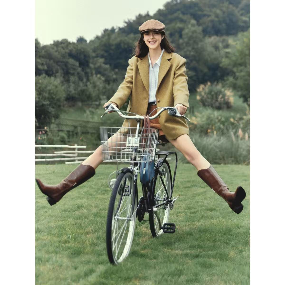 OVV2025秋冬新款女装经典微收腰随附腰带羊毛休闲西服