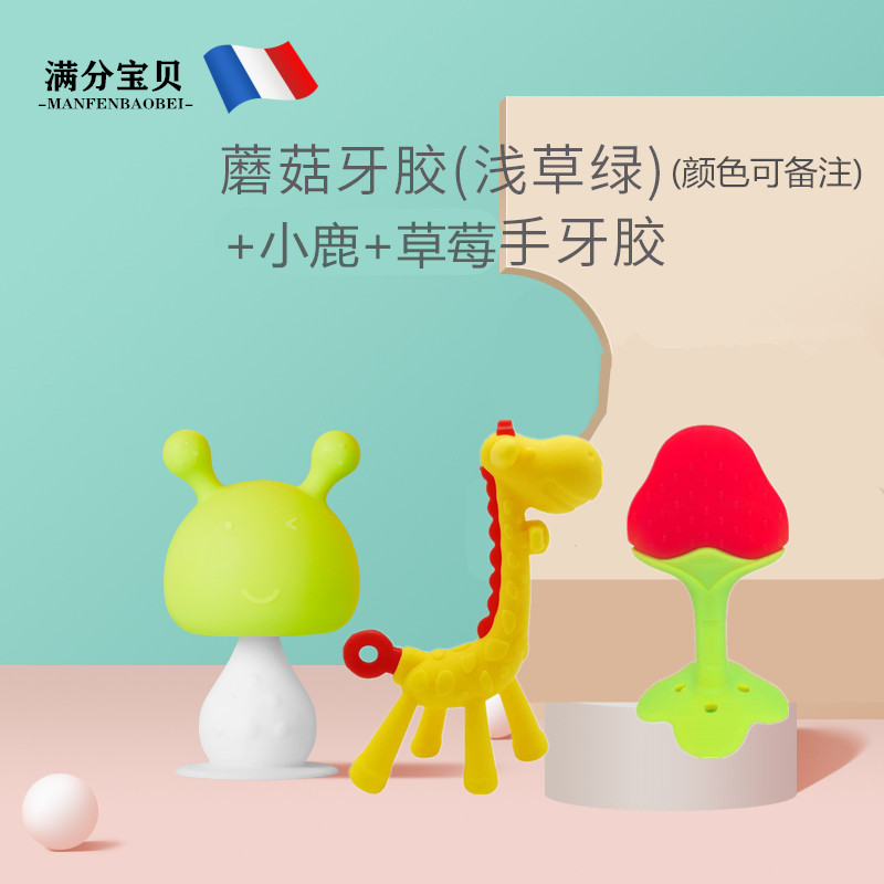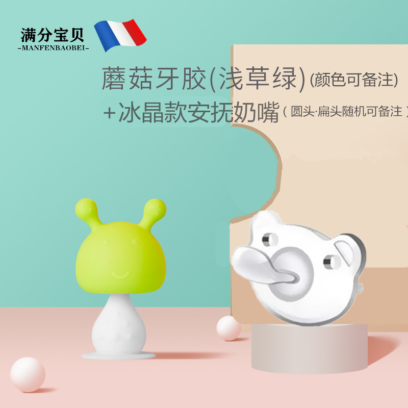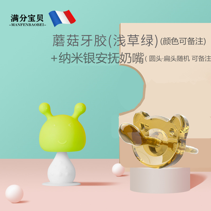 淘宝小蘑菇安抚牙胶奶嘴磨牙棒婴儿硅胶玩具宝宝防吃手神器咬胶可水煮