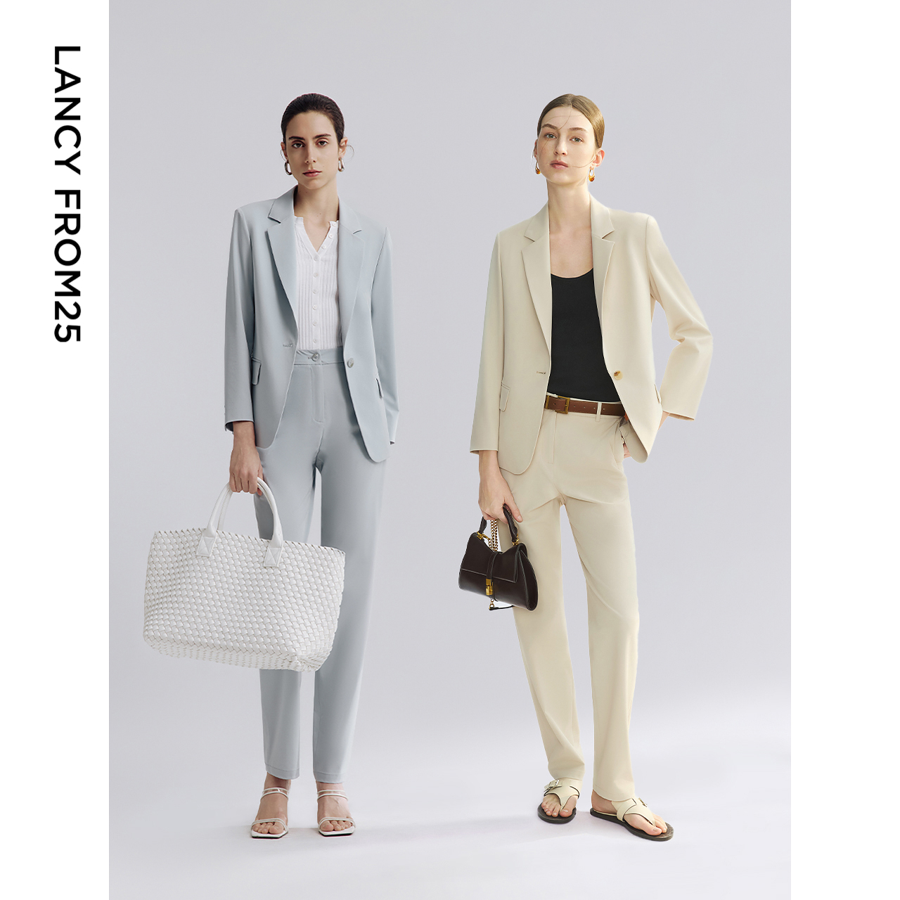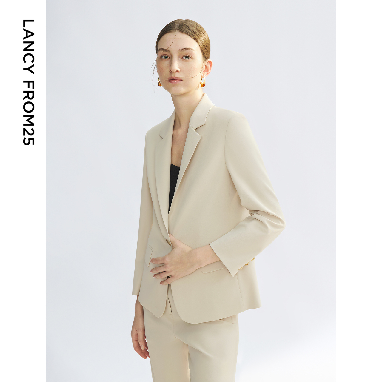 天猫朗姿2025年夏季新款平驳领轻商务西装外套职业时尚通勤高端西服女