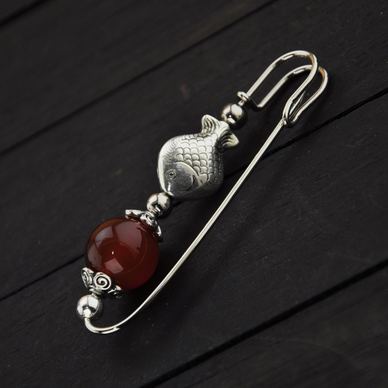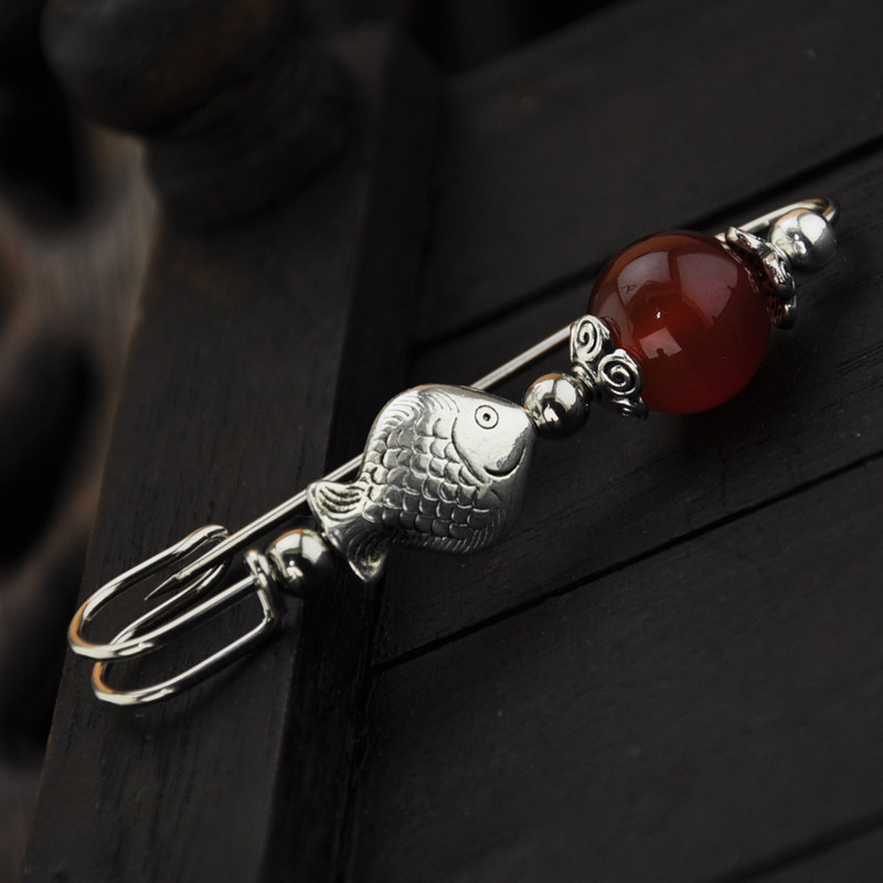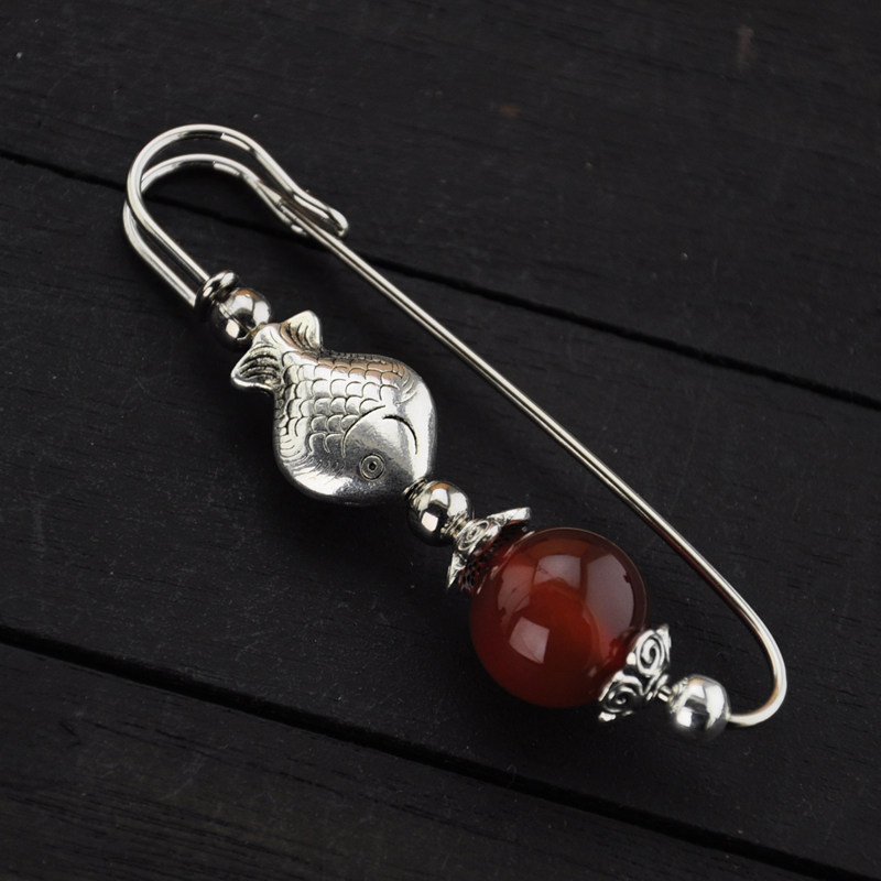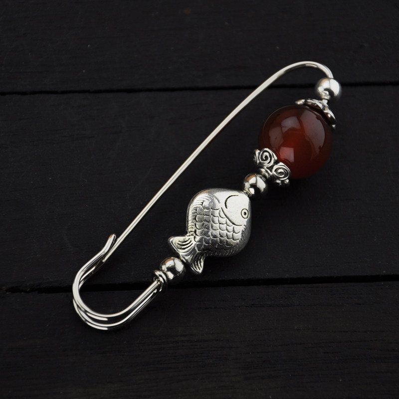 淘宝复古民族风红玛瑙大转运珠小鱼胸针别针毛衣围巾大衣本命年女饰品