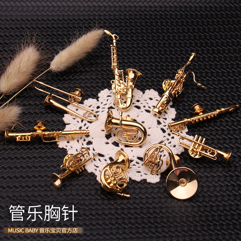 淘宝迷你萨克斯镀金胸针架子鼓短号黑管大小号巴松长笛提琴圆号西服用