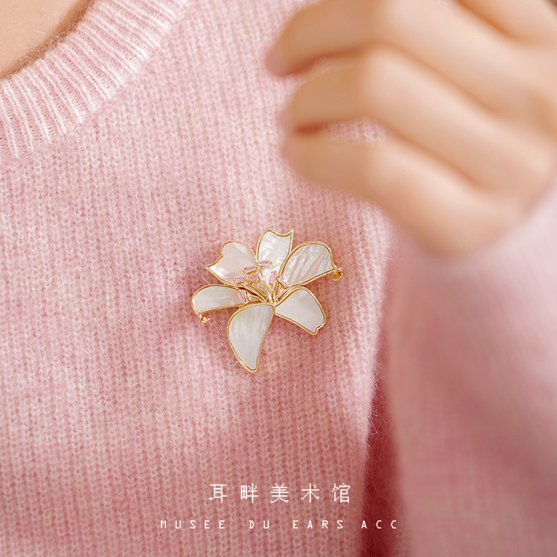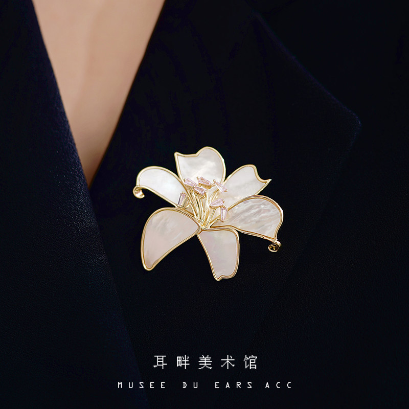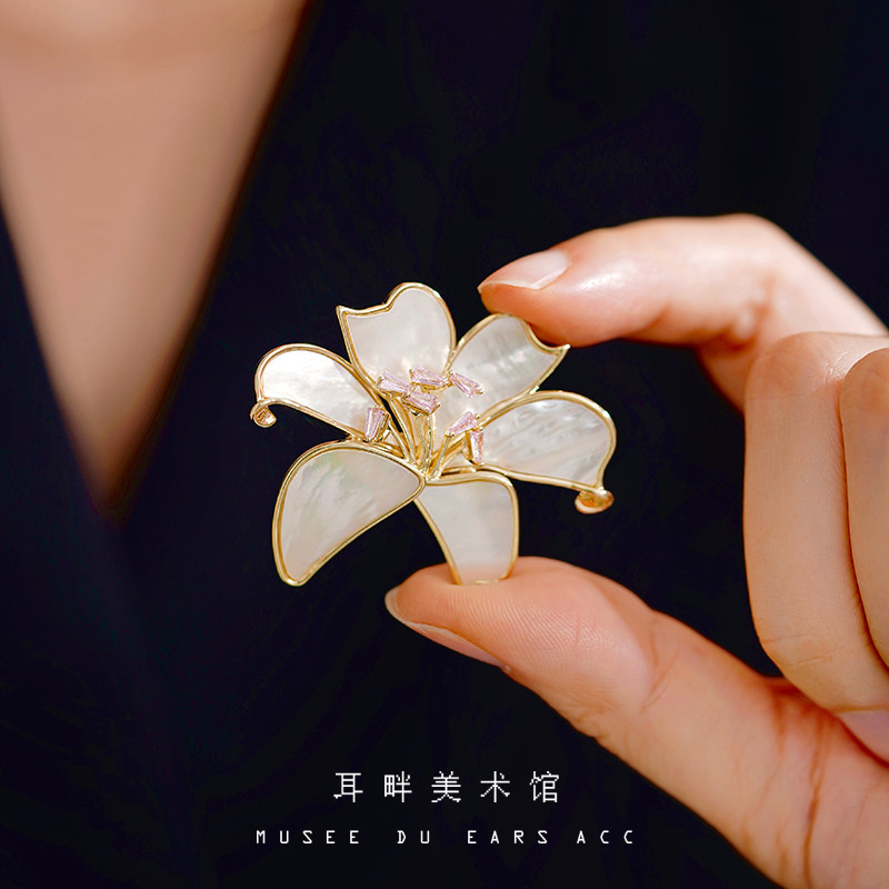 淘宝A2025新款天然母贝百合胸针女款高端精致时尚奢华气质轻奢高级感