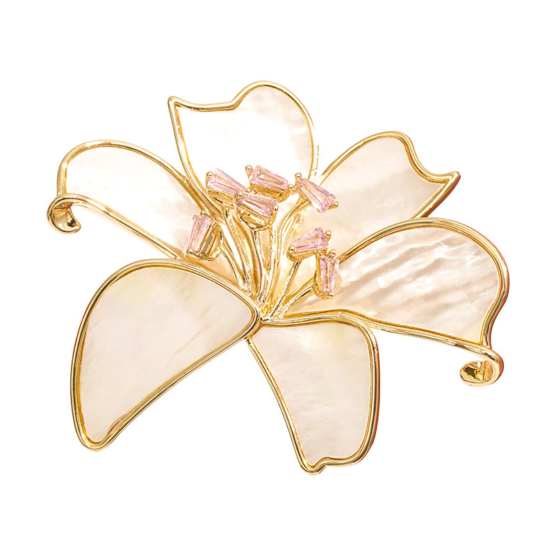 A2025新款天然母贝百合胸针,甄选优质天然母贝,经匠心雕琢呈现立体花瓣纹理,光泽温润如玉,尽显自然之美。采用高级合金镶嵌工艺,搭配微镶锆石点缀花心,细节精致考究,闪耀轻奢光芒。百合造型优雅大气,象征纯洁与高贵,完美契合现代女性独立自信的气质。无论是搭配西装、大衣或连衣裙,皆能瞬间提升整体穿搭的高级感与时尚度。兼具艺术美感与实用价值,是职场、宴会、约会等场合的点睛之笔。A2025这款胸针,以天然材质与精湛工艺诠释奢华内涵,诠释低调而不凡的轻奢态度,成就女性优雅魅力的永恒象征。