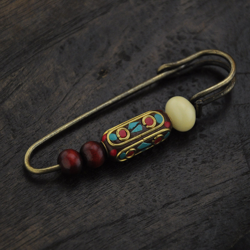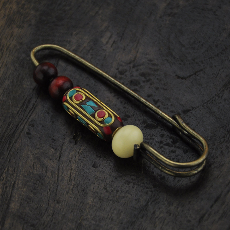 淘宝复古尼泊尔手工珠白玉菩提檀木珠胸针别针毛衣民族风男女手工饰品