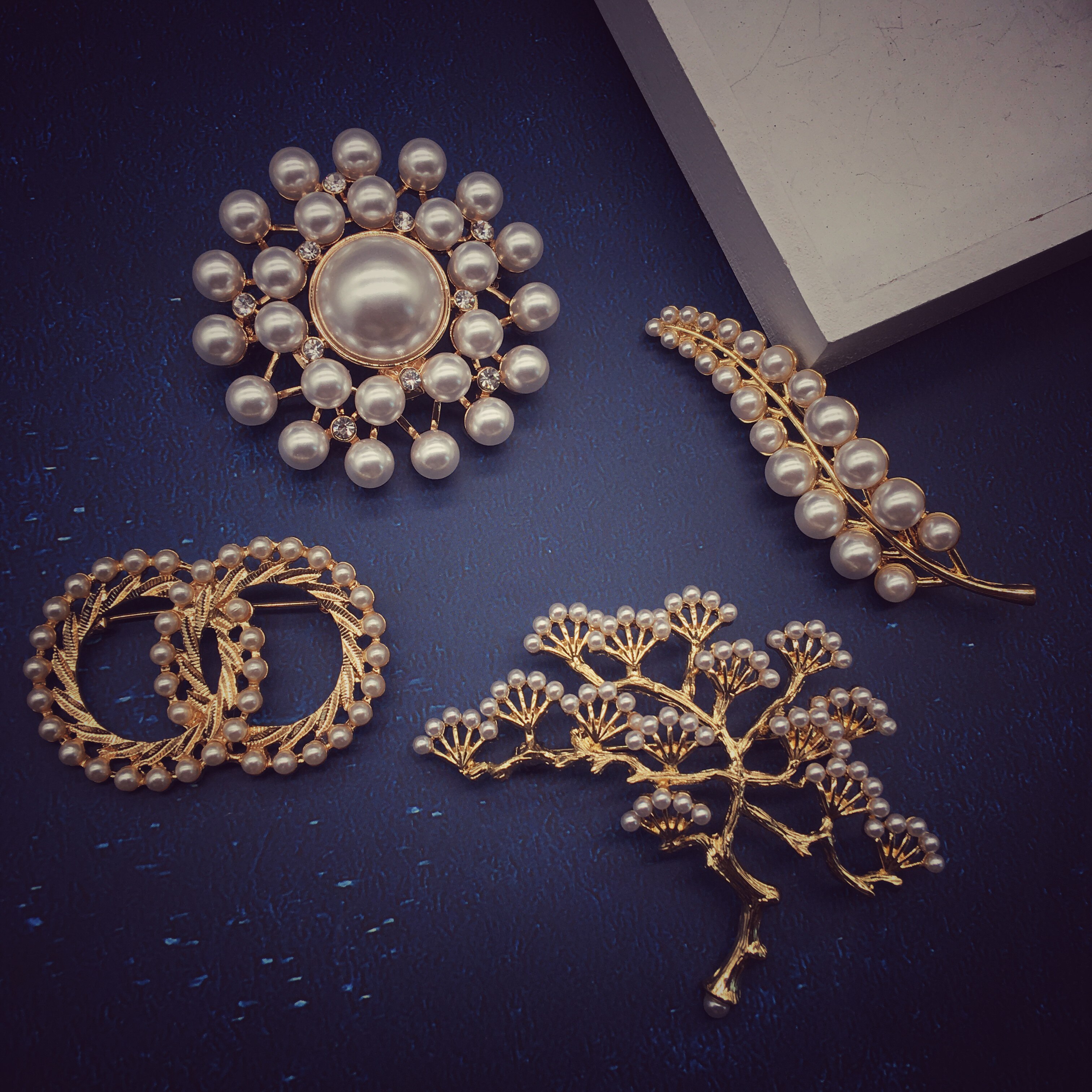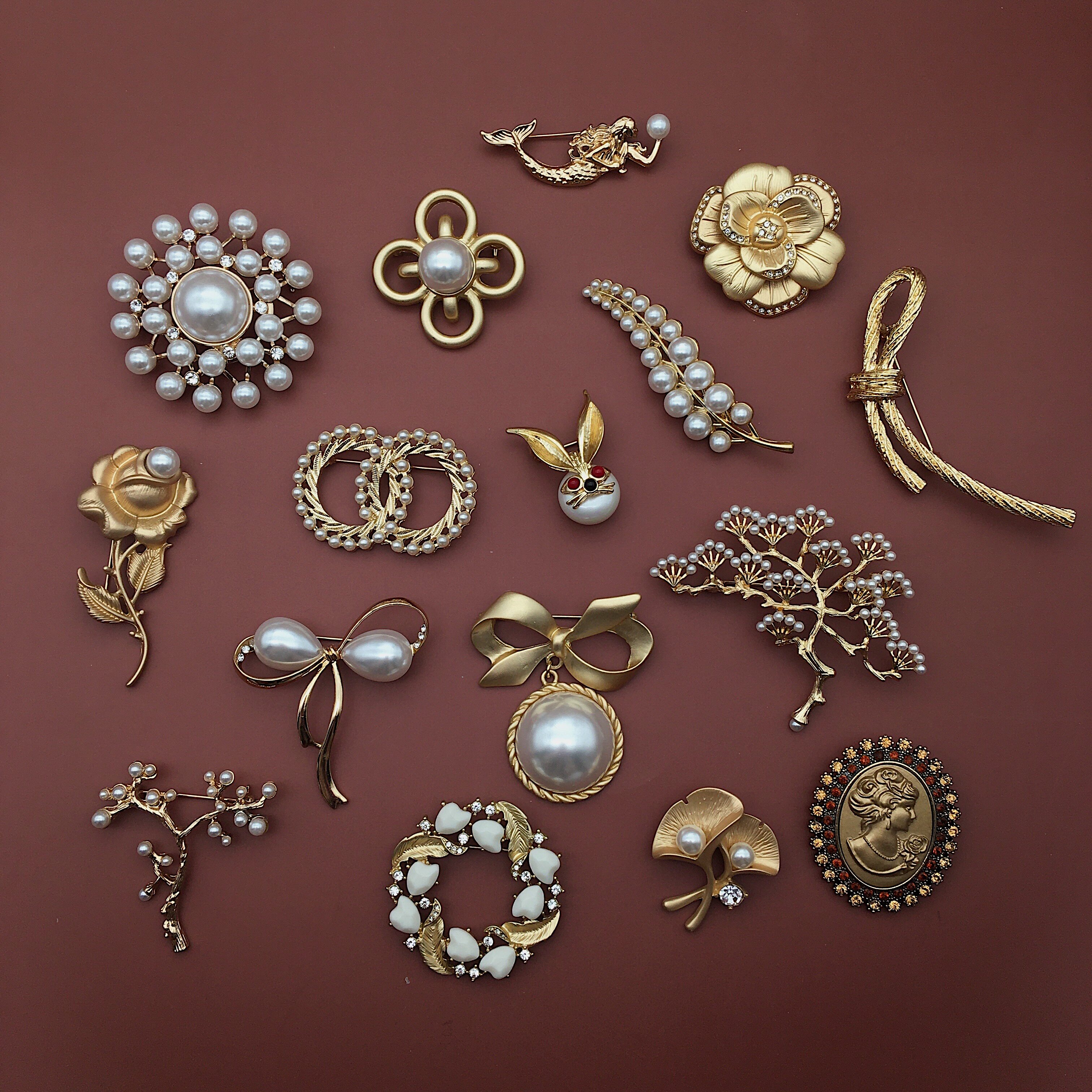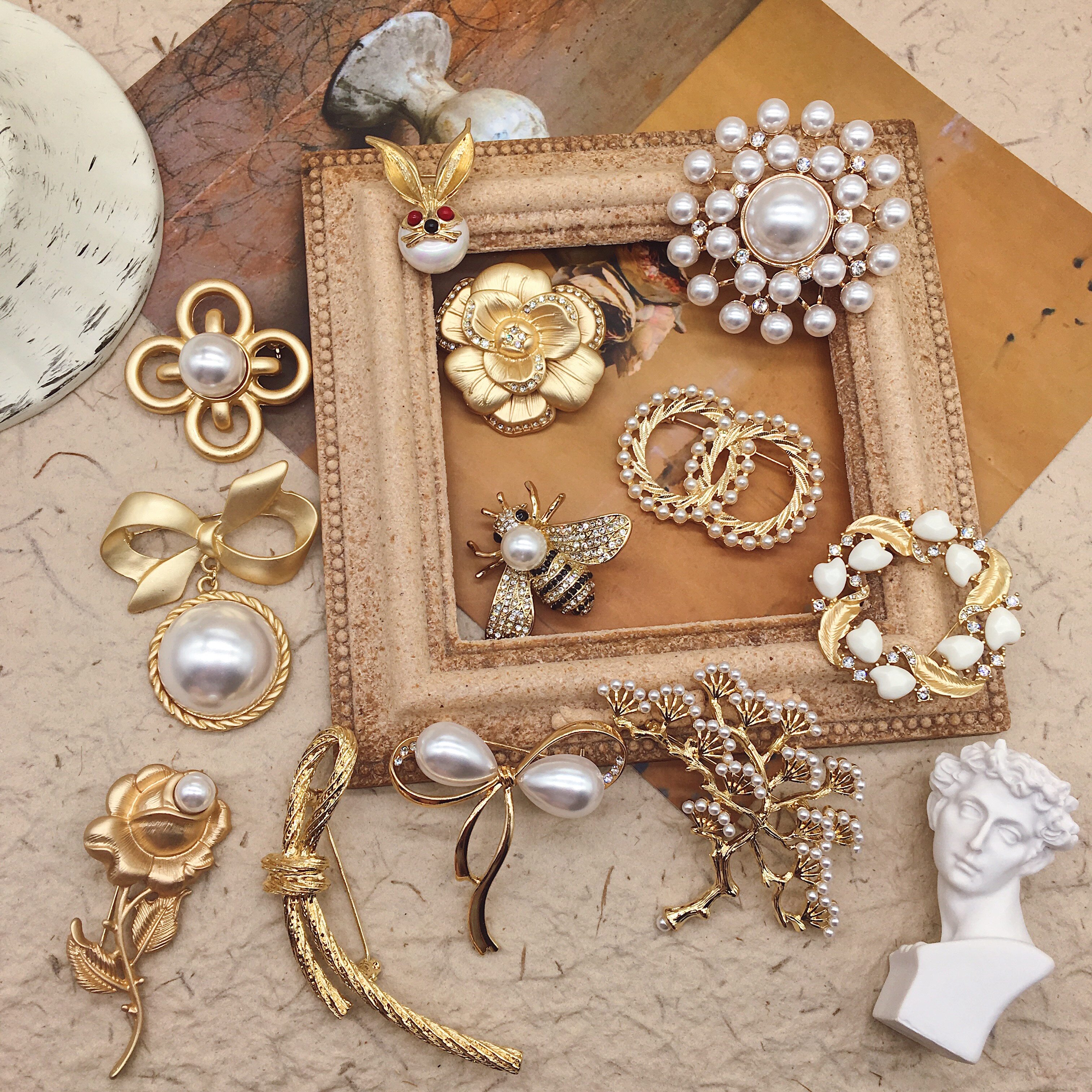 淘宝复古胸针欧美西洋古着宫廷珍珠别针女vintage巴洛克金色胸花配饰