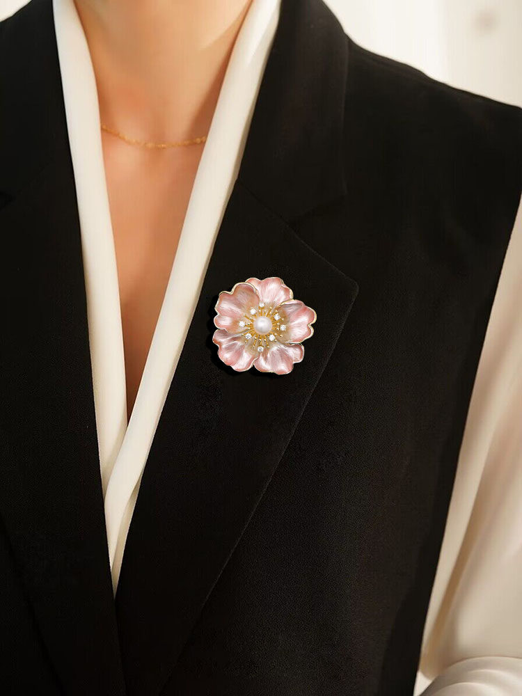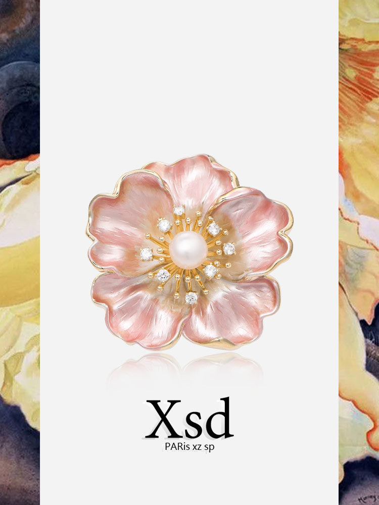 淘宝粉色牡丹花胸针高档女天然淡水珍珠中国风复古精致国潮古典胸花扣