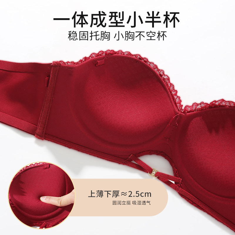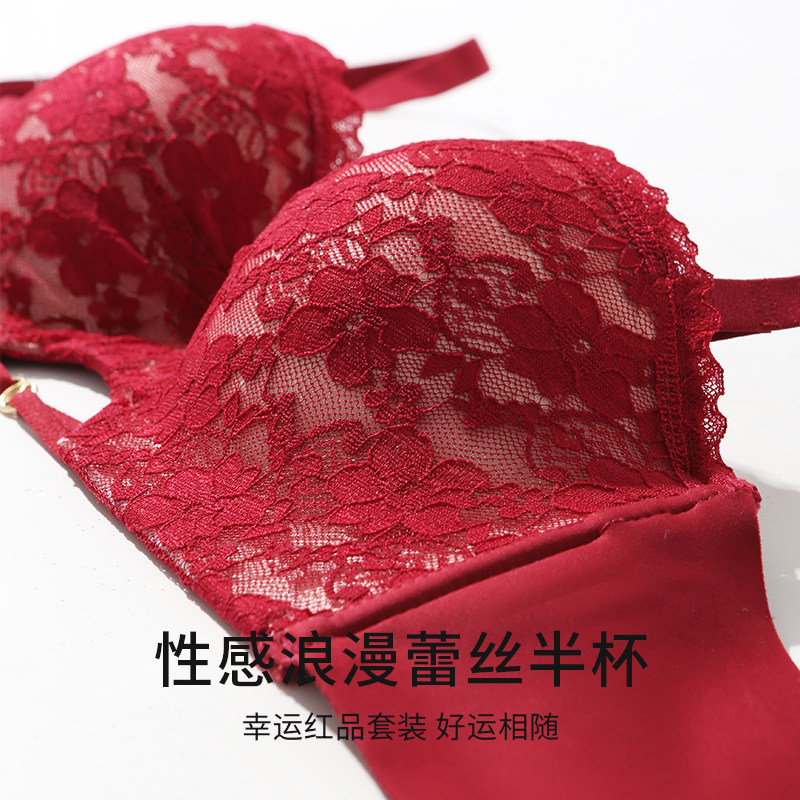本命年内衣女红色马年转运小胸聚拢性感无钢圈结婚新娘文胸罩套装