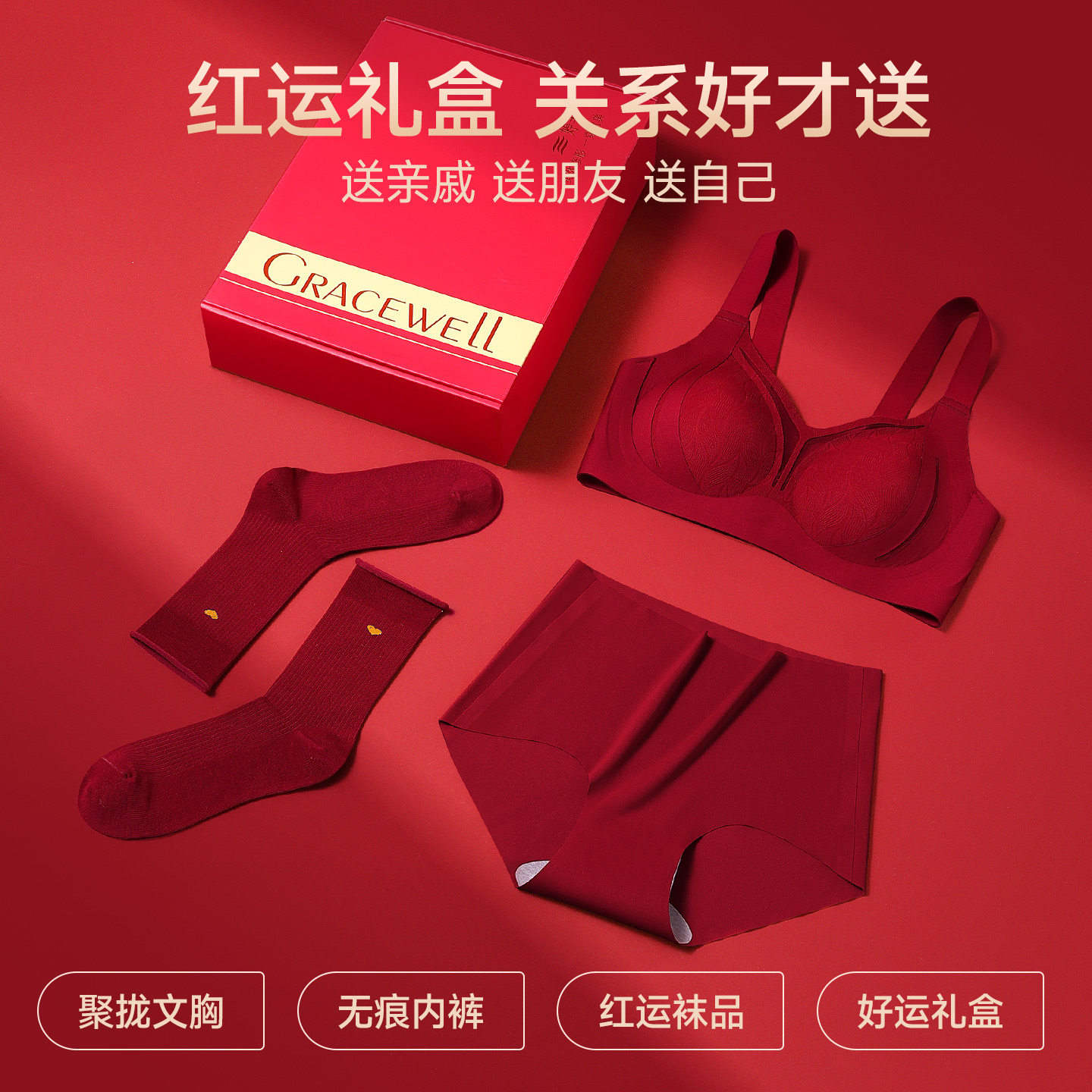 聚拢无钢圈收副乳马年红色本命年套装内衣女文胸都市丽人2026新款