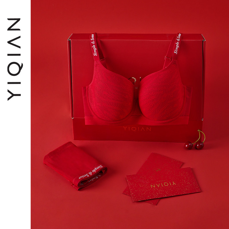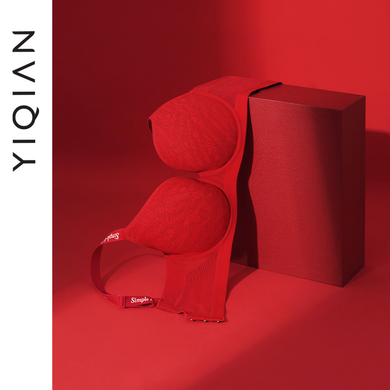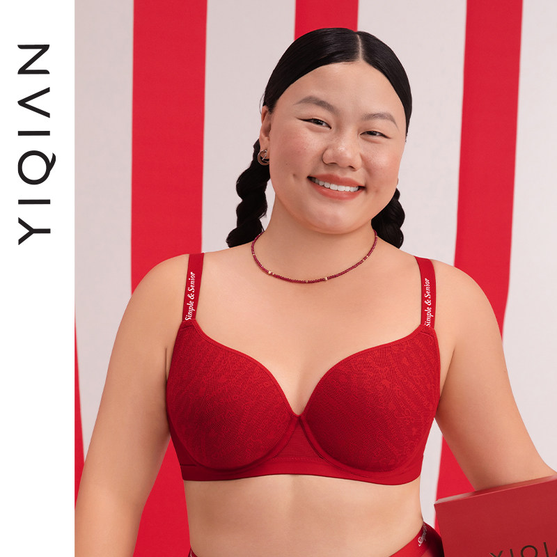 天猫怡倩【氧气杯2.0】红色无痕内衣女大胸显小薄款本命年文胸套装
