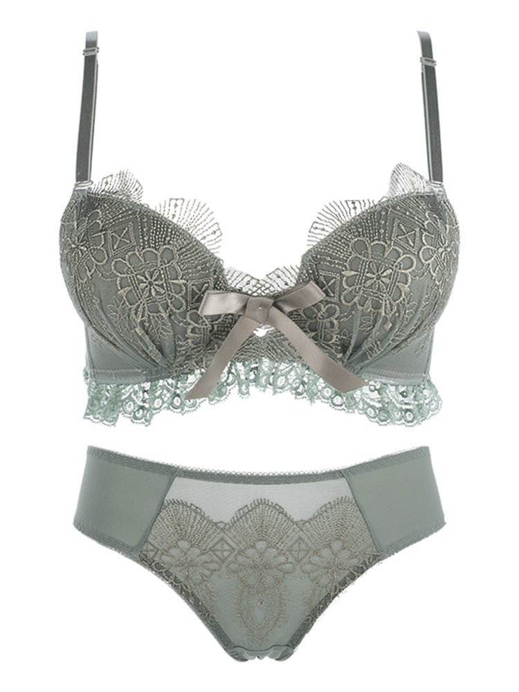 淘性感刺绣蕾丝性感超薄款文胸套装低心位U型内衣透视大胸显小聚拢