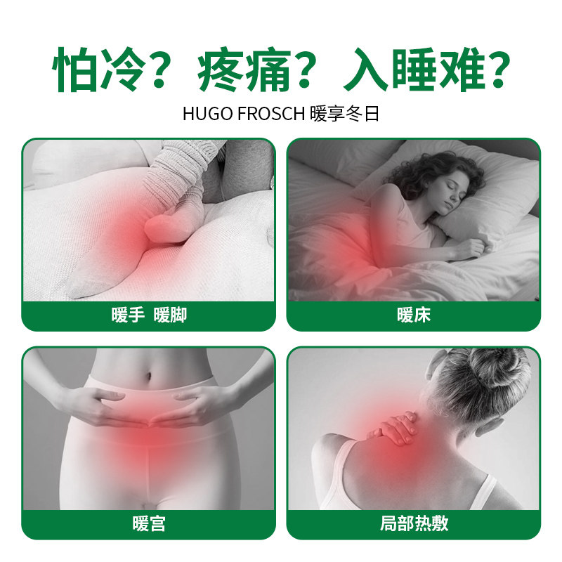 德国HUGO热水袋专为安全热敷设计,采用高品质环保PVC材质,耐高温、防爆裂,使用更安心。大号容量设计,保温持久,适用于腹部、腰部、脚部及被窝取暖,尤其适合女性经期暖腹使用。注水口宽口设计,注水便捷,密封性强,有效防止漏水。表面柔软亲肤,触感舒适,可贴合身体曲线,均匀散热。产品通过严格安全检测,符合德国品质标准,是冬季居家、办公、旅行必备的温暖伴侣。无论是缓解疼痛还是日常保暖,HUGO热水袋都以安全、实用、耐用的特点赢得用户信赖。