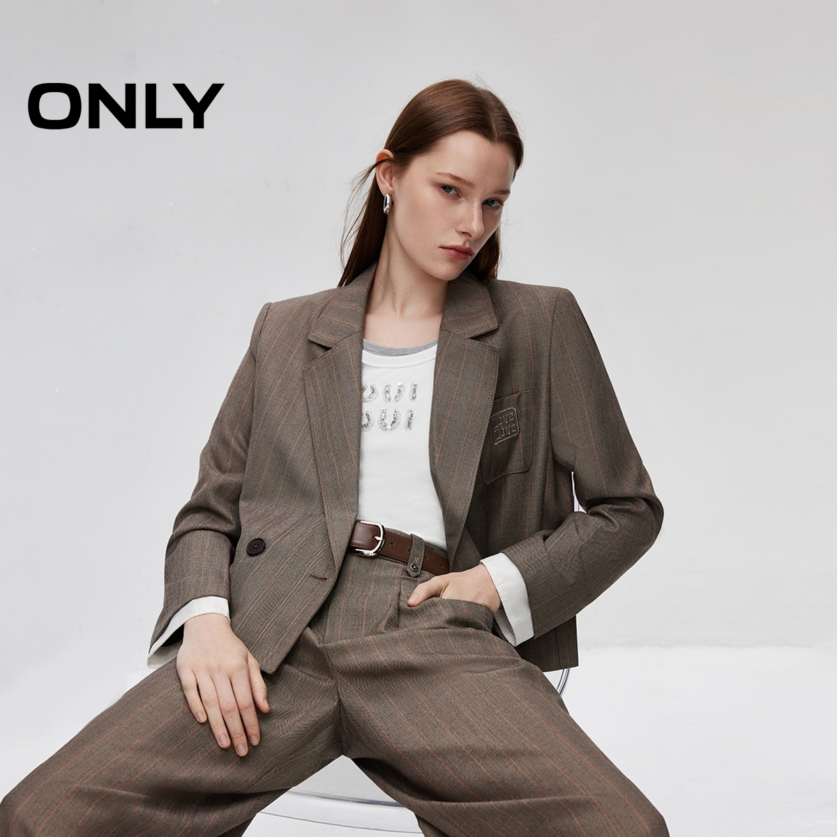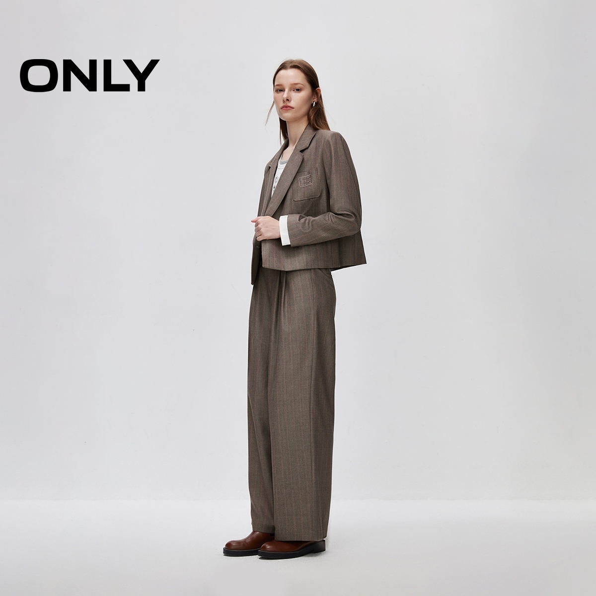 天猫【ONLY奥莱】秋冬日常通勤刺绣正肩直筒短款西服外套女
