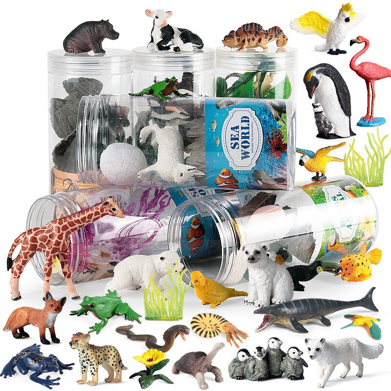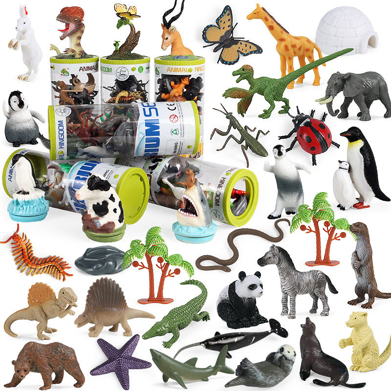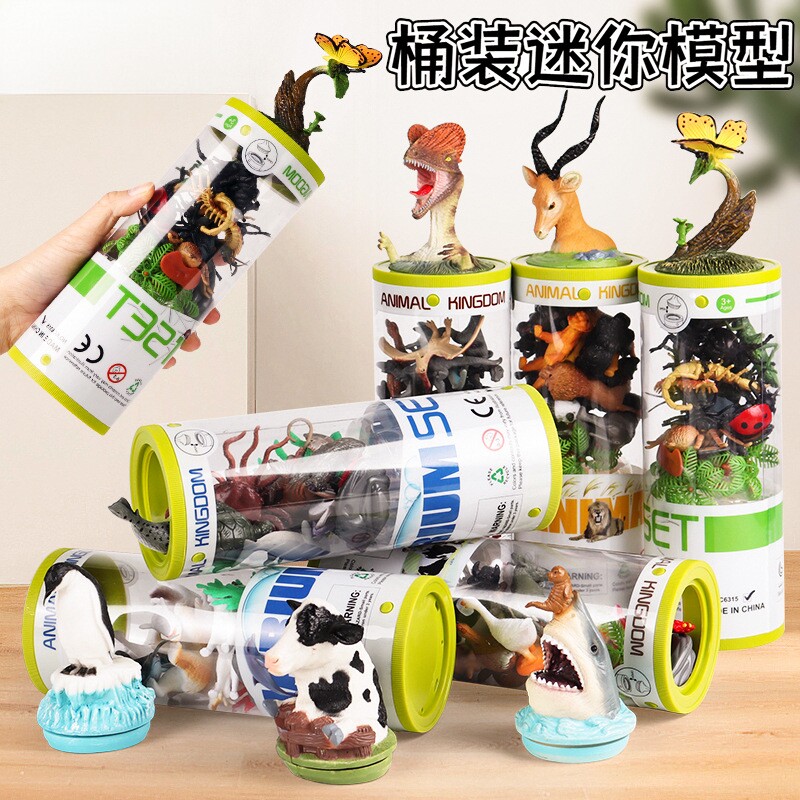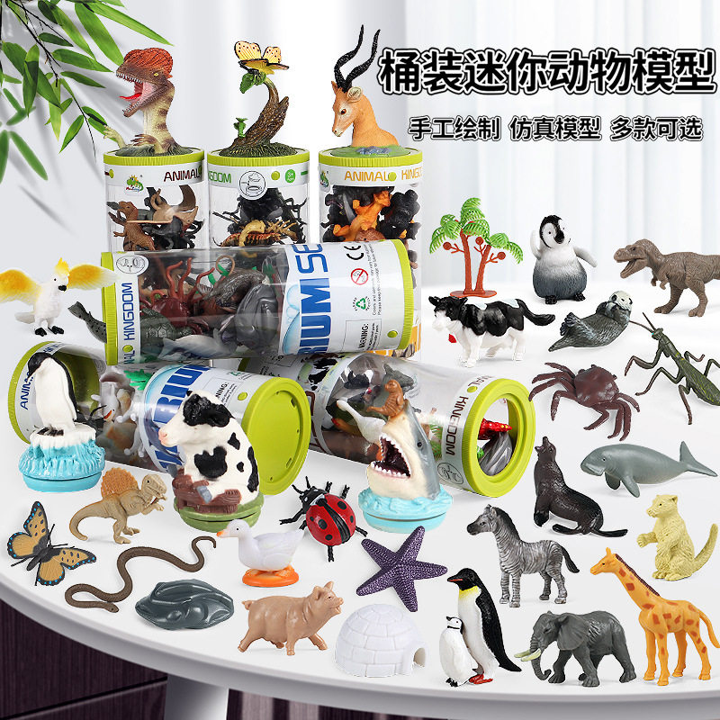 淘宝儿童仿真桶装动物模型迷你恐龙玩具昆虫海洋鸟类家禽盆栽摆件礼物