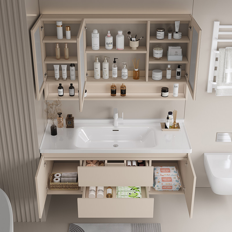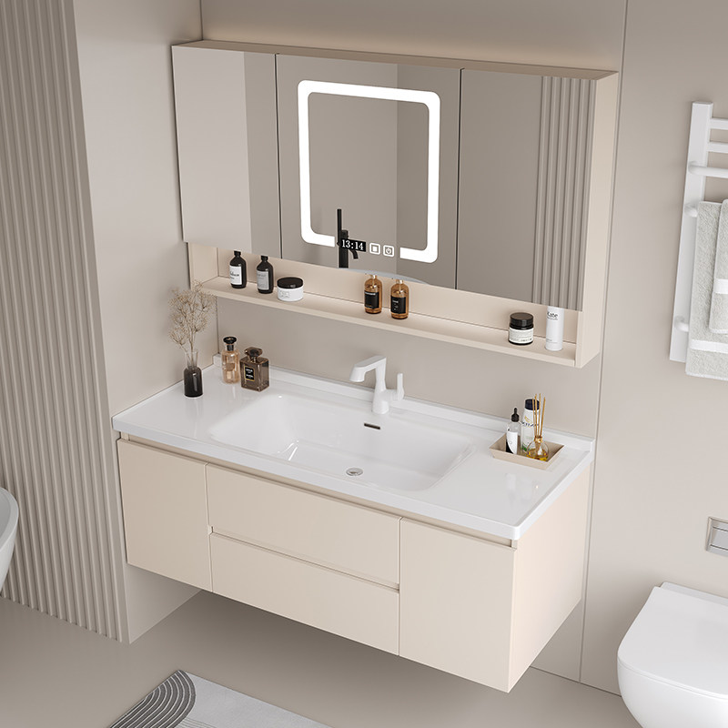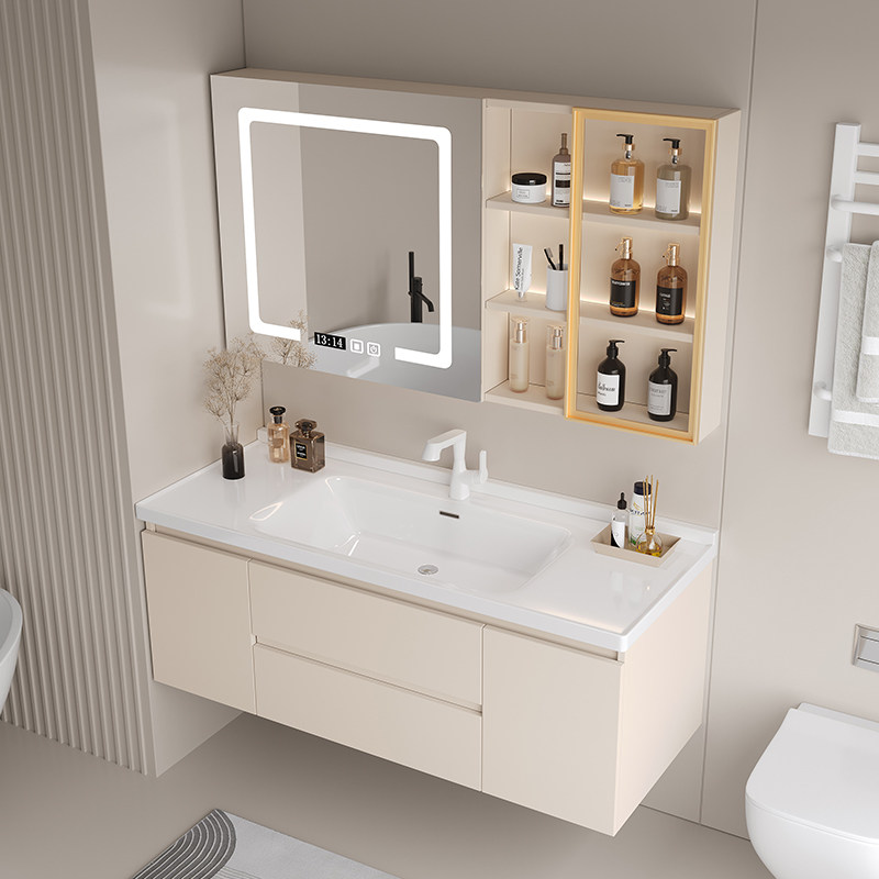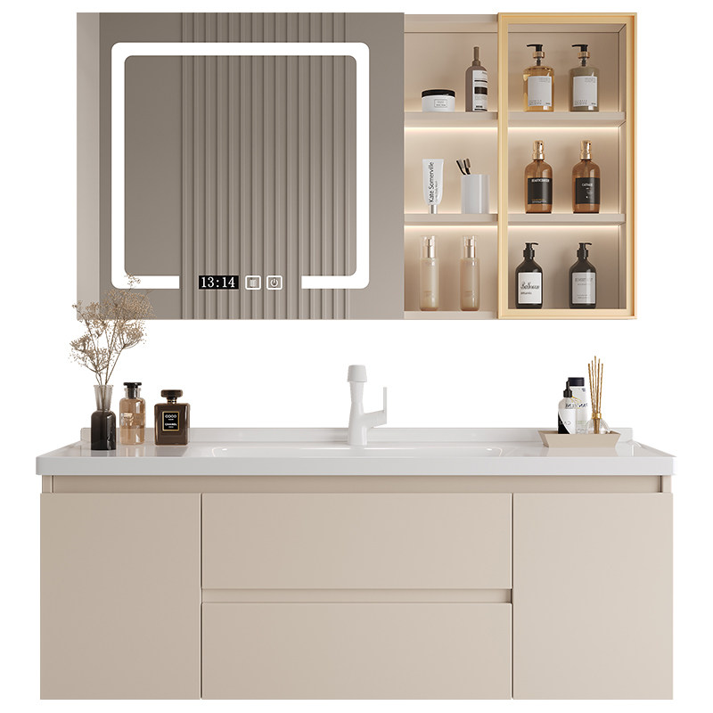 这款陶瓷一体盆浴室柜组合,采用现代简约奶油风设计,融合温润质感与实用功能,为卫生间注入优雅氛围。一体成型的陶瓷盆无缝易洁,有效防污抑菌,搭配高密度环保板材柜体,防潮耐用,储物空间合理分区,满足日常收纳需求。柔和的奶油色调搭配极简线条,视觉清爽舒适,适配多种装修风格。台面平整宽敞,洗漱更便捷,五金配件精选优质材质,开合顺滑静音。整体结构稳固,安装简便,兼顾美观与实用性,是现代家居卫生间的理想之选,提升生活品质与空间格调。