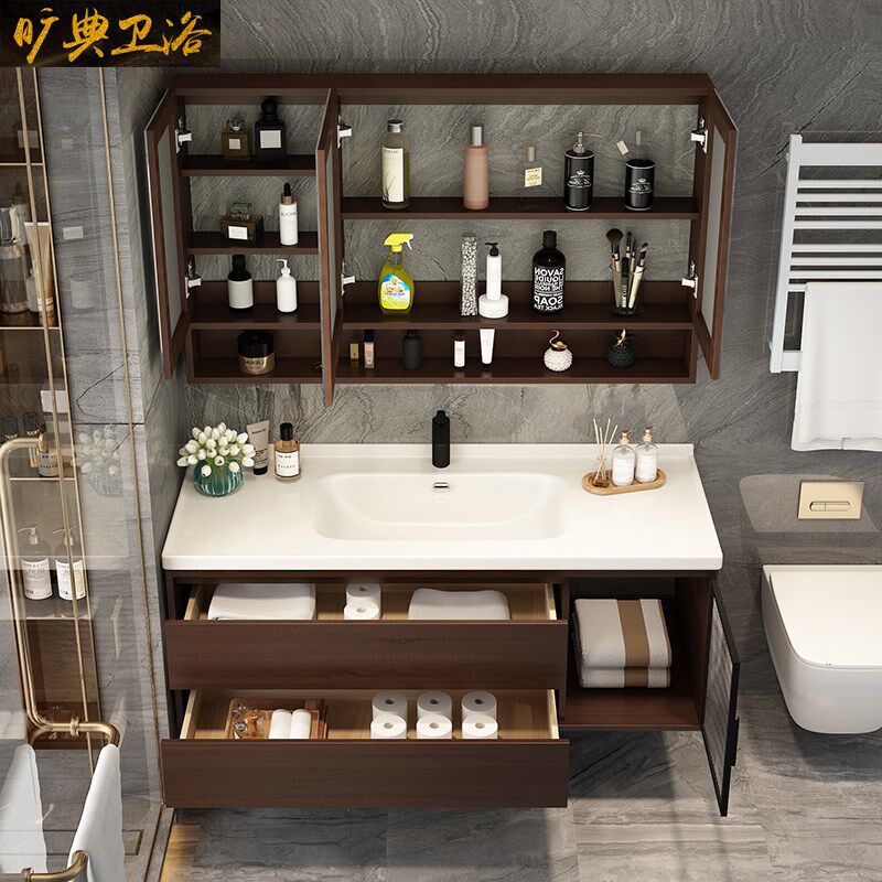 淘宝新中式橡木浴室柜组合智能镜柜陶瓷一体盆卫生间洗手池洗脸台盆柜