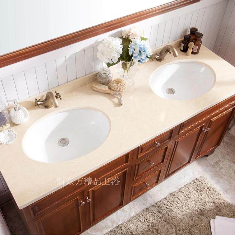 淘中古风浴室柜组合圆角卫生间洗漱台梅花镜洗手盆奢石洗脸盆柜定制