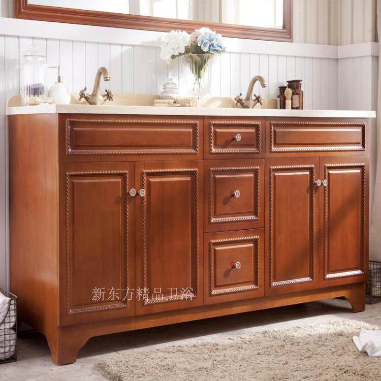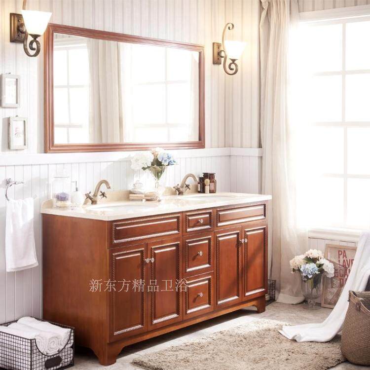 淘宝美式浴柜洗手盆柜洗漱台欧式浴室柜落地实木仿古浴室柜橡木2070