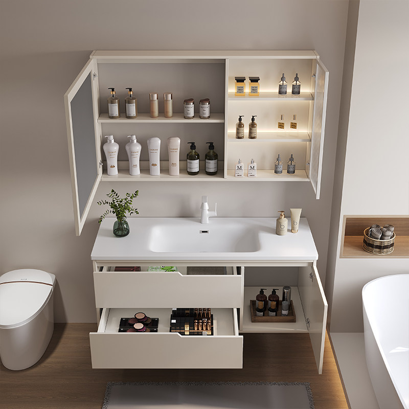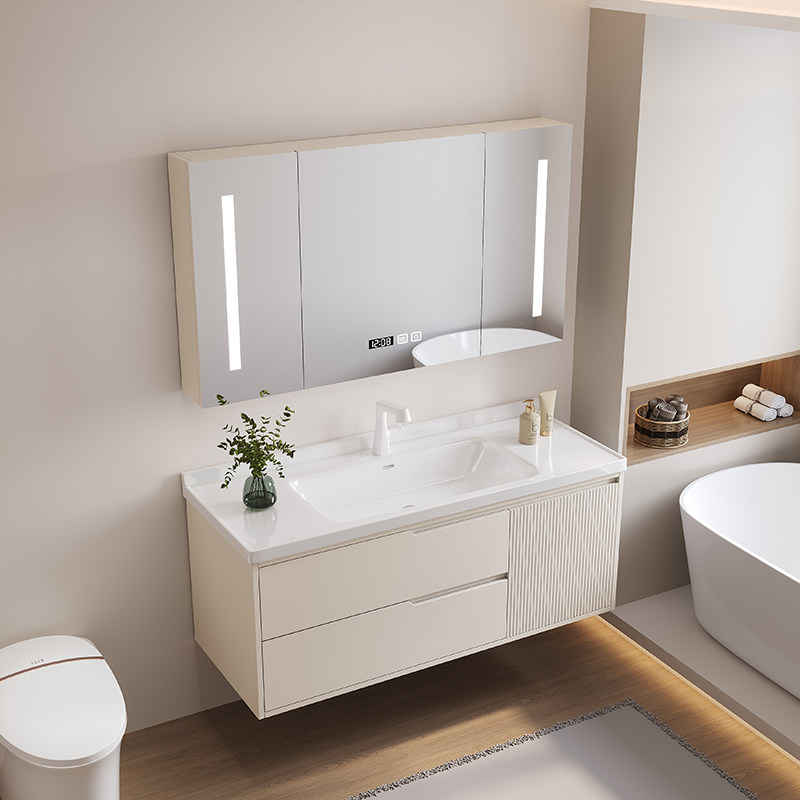 陶瓷一体盆浴室柜组合洗脸手台盆池卫生间洗漱台智能简约现代轻奢