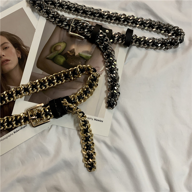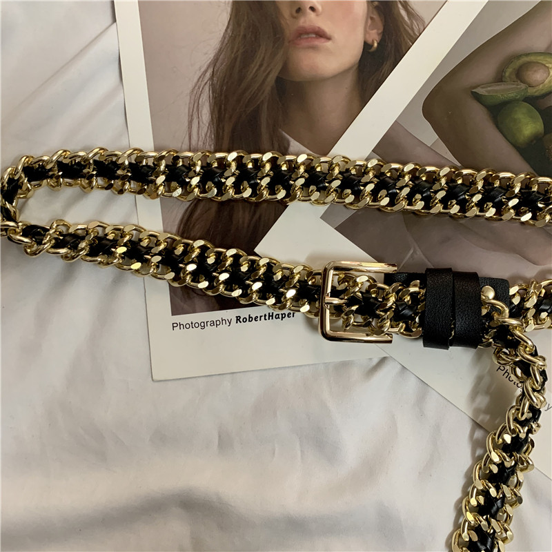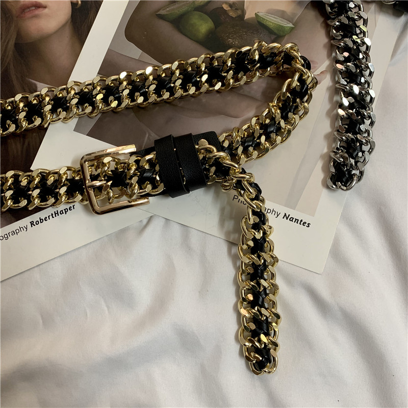 淘宝金属粗链条PU编织腰链女装饰韩版个性连衣裙西装腰带百搭腰封配饰