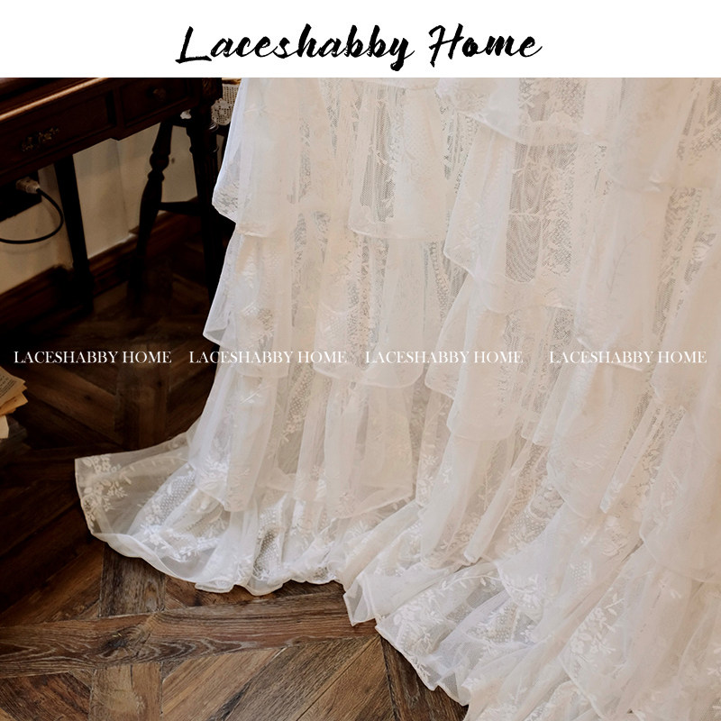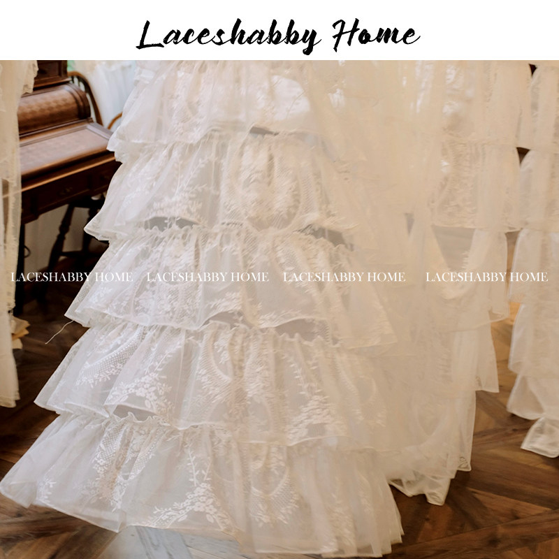淘宝LACESHABBY新款法式复古浪漫白色碎花蕾丝公主荷叶边窗纱窗帘纱帘