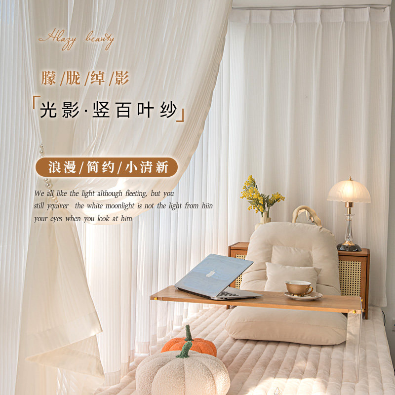 淘日式镜面窗纱飘窗阳台客厅卧室遮阳隔热网红百叶纱帘简约现代白纱