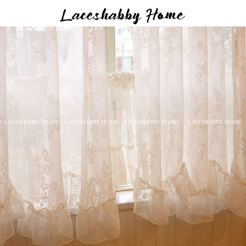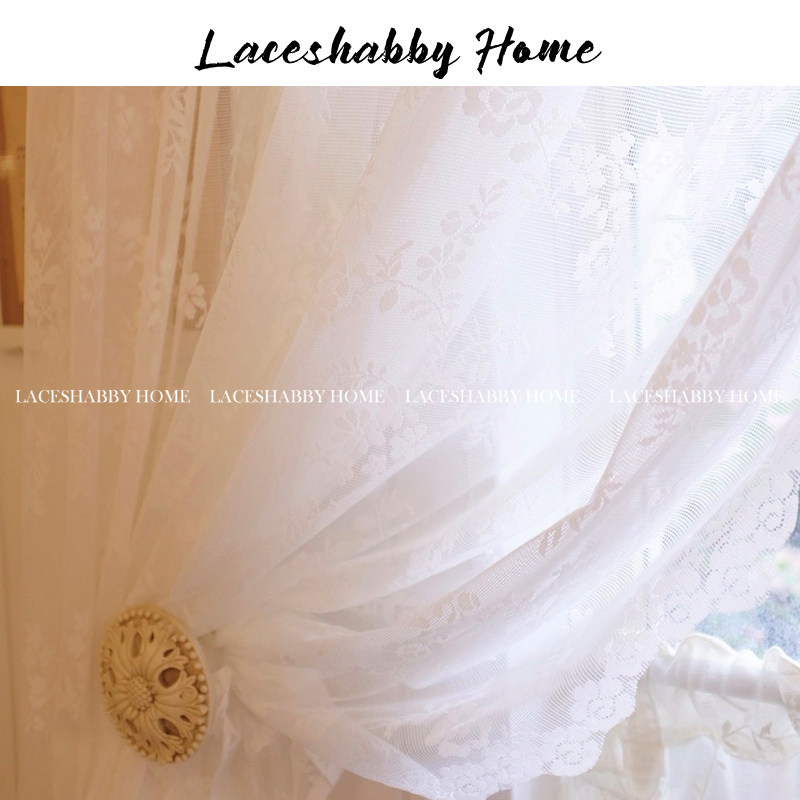 淘宝LACESHABBY新款法式浪漫复古白色碎花荷叶边卧室窗纱窗帘