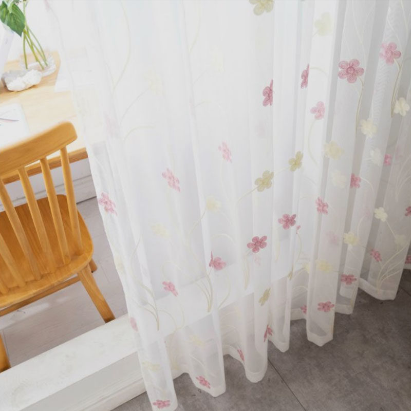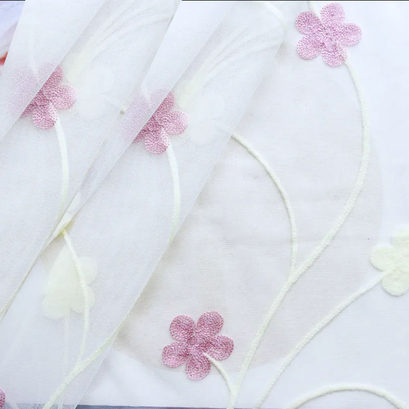 淘宝现代轻奢窗纱绣花纱婚庆粉色纱半透光客厅阳台飘窗店铺门帘挂钩款