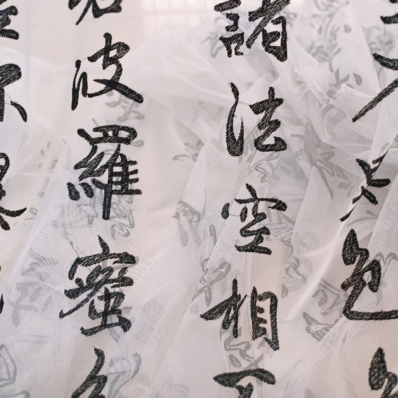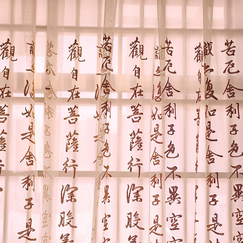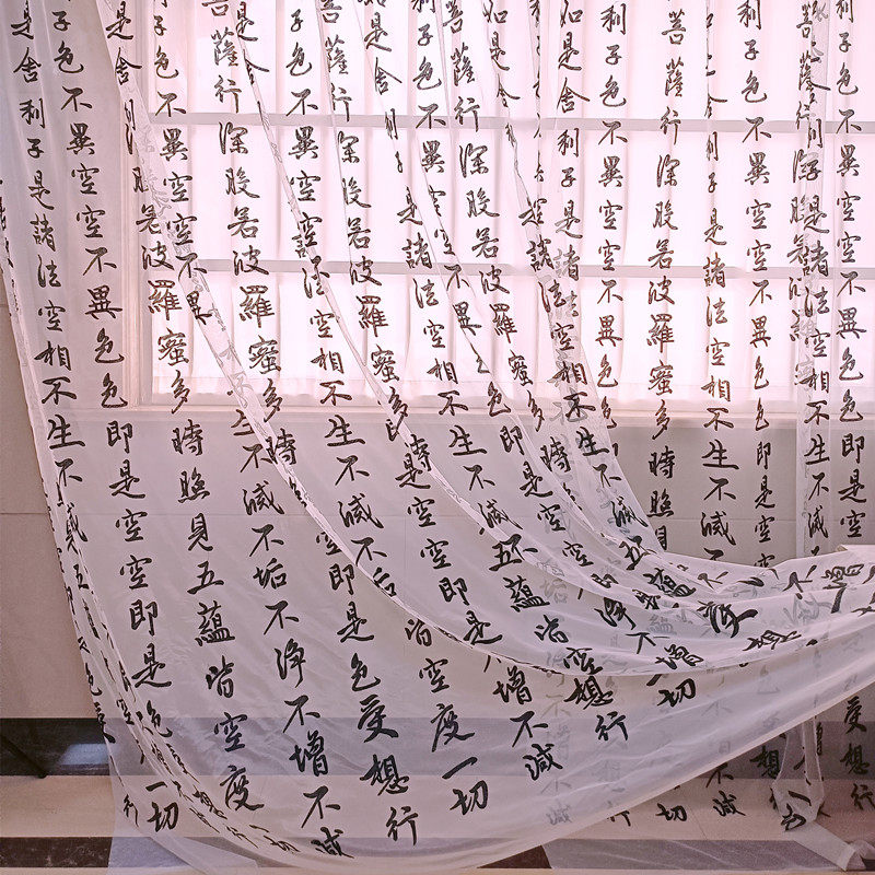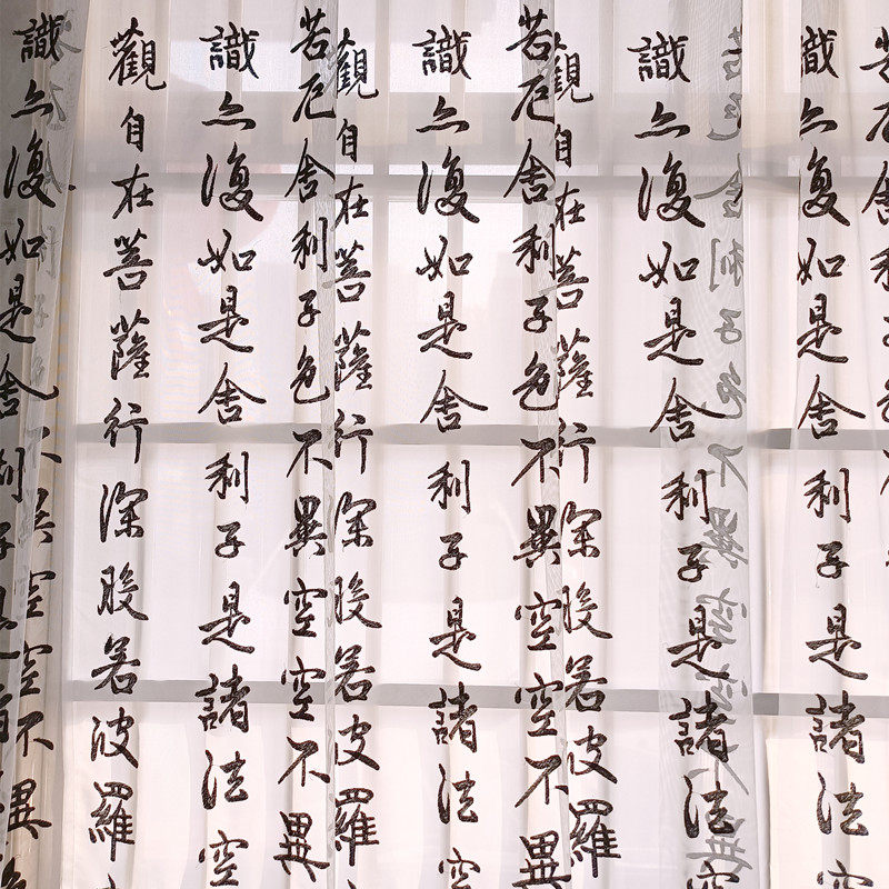 淘宝新中式心经古典书法文字绣花窗纱客厅餐厅茶楼中国风透光纱帘包邮