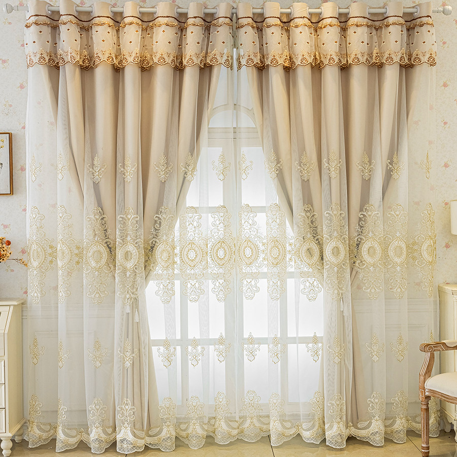 天法式蕾丝窗帘透光不透人双层纱帘卧室新款客厅复古轻奢梦幻帘窗纱