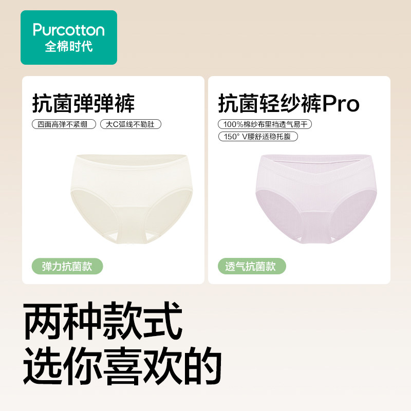 【店铺热卖】全棉时代孕妇内裤,专为全孕期妈妈贴心设计。采用95%以上高含棉面料,柔软亲肤、透气排汗,有效呵护孕期敏感肌肤。低腰托腹设计,科学承托日渐隆起的腹部,缓解腰部压力,舒适不勒肚,适合孕早、中、晚期全程穿着。加宽弹力腰头,久穿不变形,侧边可调节设计,随孕期变化自由调节松紧。大码剪裁包容性强,贴合身形不移位,侧边加高防夹臀,提升穿着体验。安全无荧光剂,A类母婴标准,安心之选。无论是居家还是外出,都能让孕妈享受全天候舒适呵护,是孕期必备的高品质贴身单品。