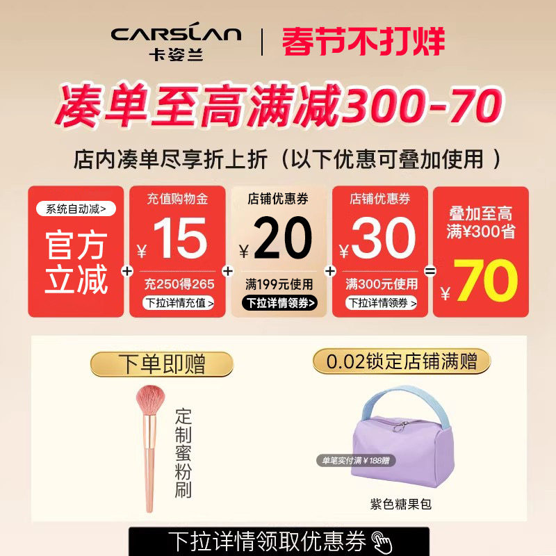 卡姿兰腮红高光修容三合一体盘,2025年全新爆款来袭!集腮红、高光、修容于一体,一盘搞定全脸立体妆容,轻松打造自然红润好气色。精选膨胀色系,细腻粉质贴合肌肤,显色自然不飞粉,适合亚洲女性肤色。腮红提气色,高光提亮轮廓,修容塑造立体小脸,三效合一,便携实用。官方正品保障,品质安心,持久持妆不暗沉。无论是日常通勤还是约会派对,都能轻松驾驭,展现精致妆容魅力。卡姿兰官方旗舰店热销推荐,2025必入彩妆单品,让你轻松拥有立体精致妆容,绽放自信光彩。
