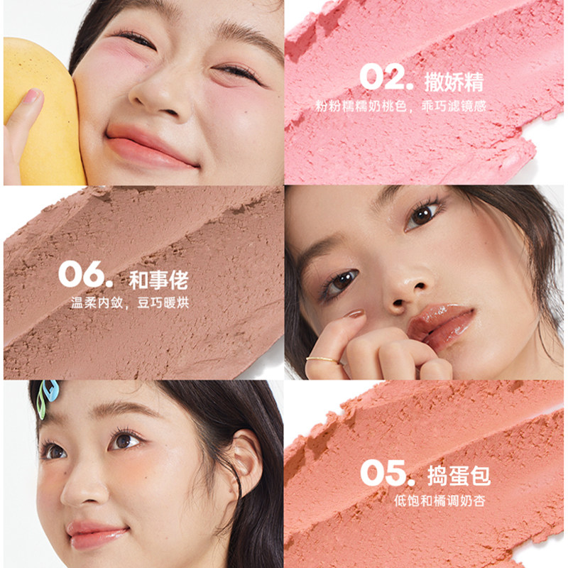 千妍冷萃腮红烤粉提亮膨胀色收缩色柔光腮红盘双色水缎光腮红晚杏