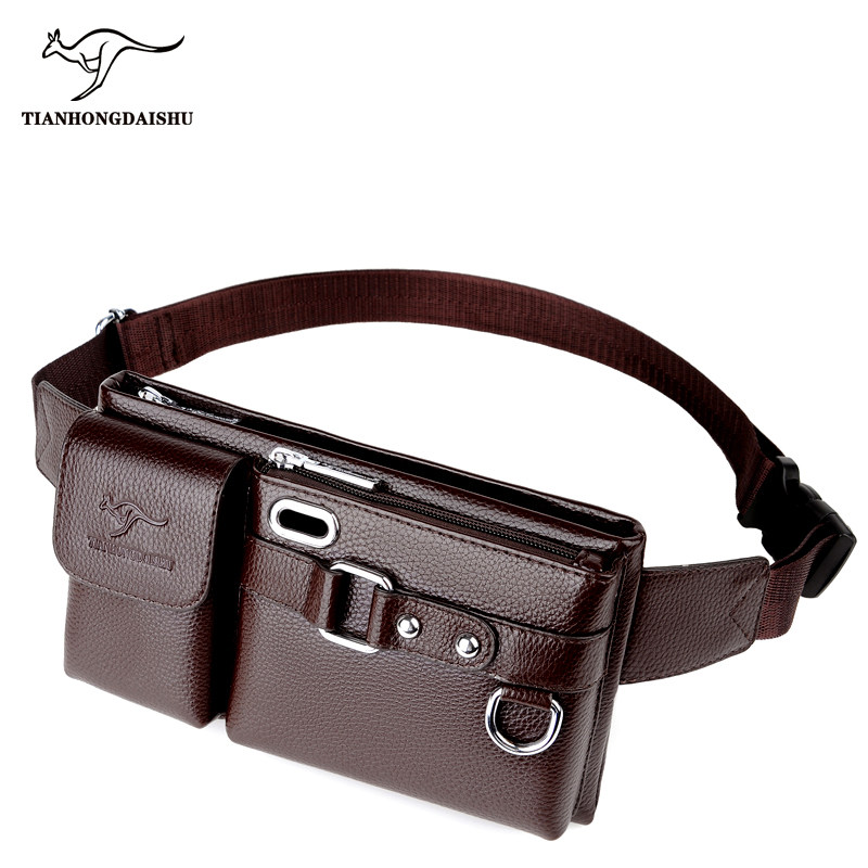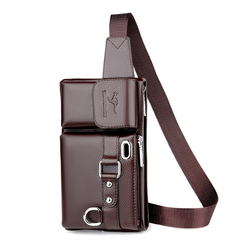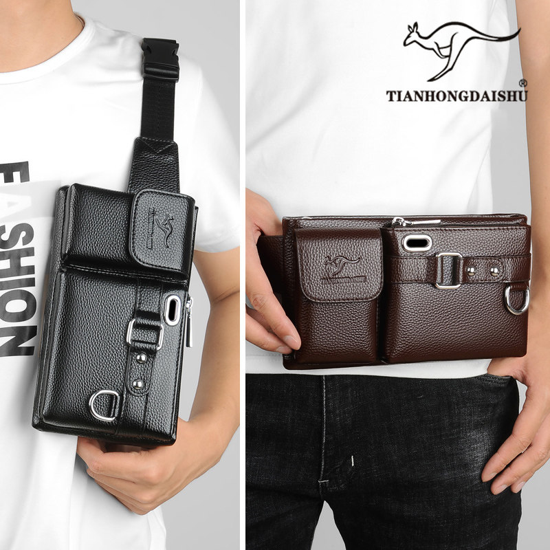 淘宝帅桐袋鼠男士腰包牛皮多功能手机包男真皮新款休闲胸包单肩斜挎包