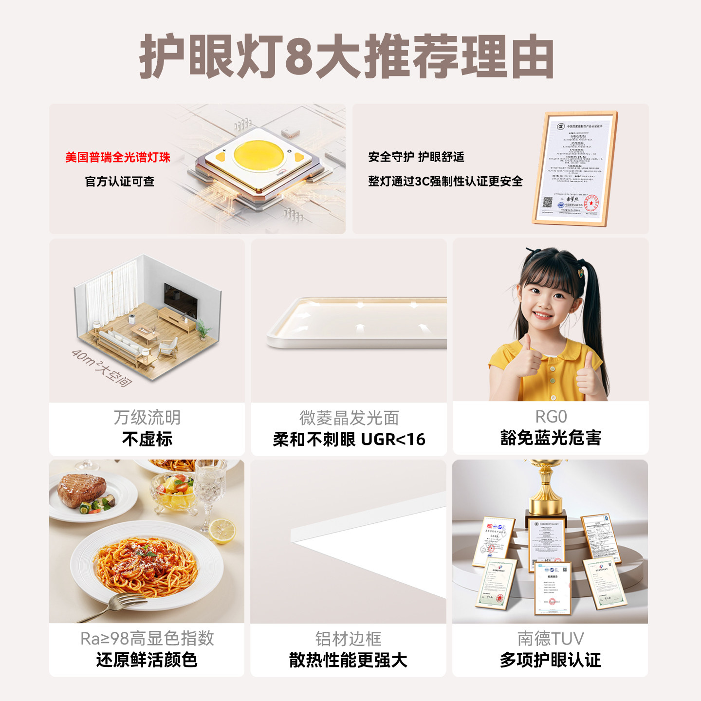 天雷士照明小白灯普瑞全光谱护眼吸顶灯客厅主灯卧室灯智能全屋灯具