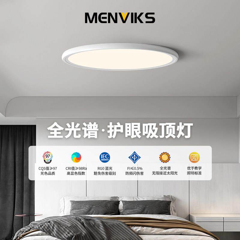 八特意式极简吸顶灯全光谱护眼男孩儿童房超薄无缝高级感卧室灯